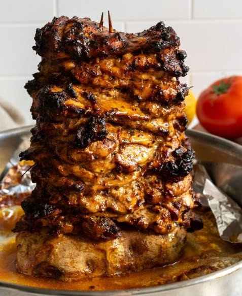 I bought a Gyros pan pictured on left. I’ve done it with chicken and beef and both came out pretty good. The chicken was a killer smelling it while it cooked.