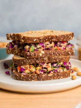 A spicy noodle stir-fry with chicken and a homemade sesame sauce. This dish comes together in just 15 minutes and delivers all the flavors of your favorite takeout. I made this for the two of us. Thanks to allthenoodles.com for the inspiration this was based off their recipe