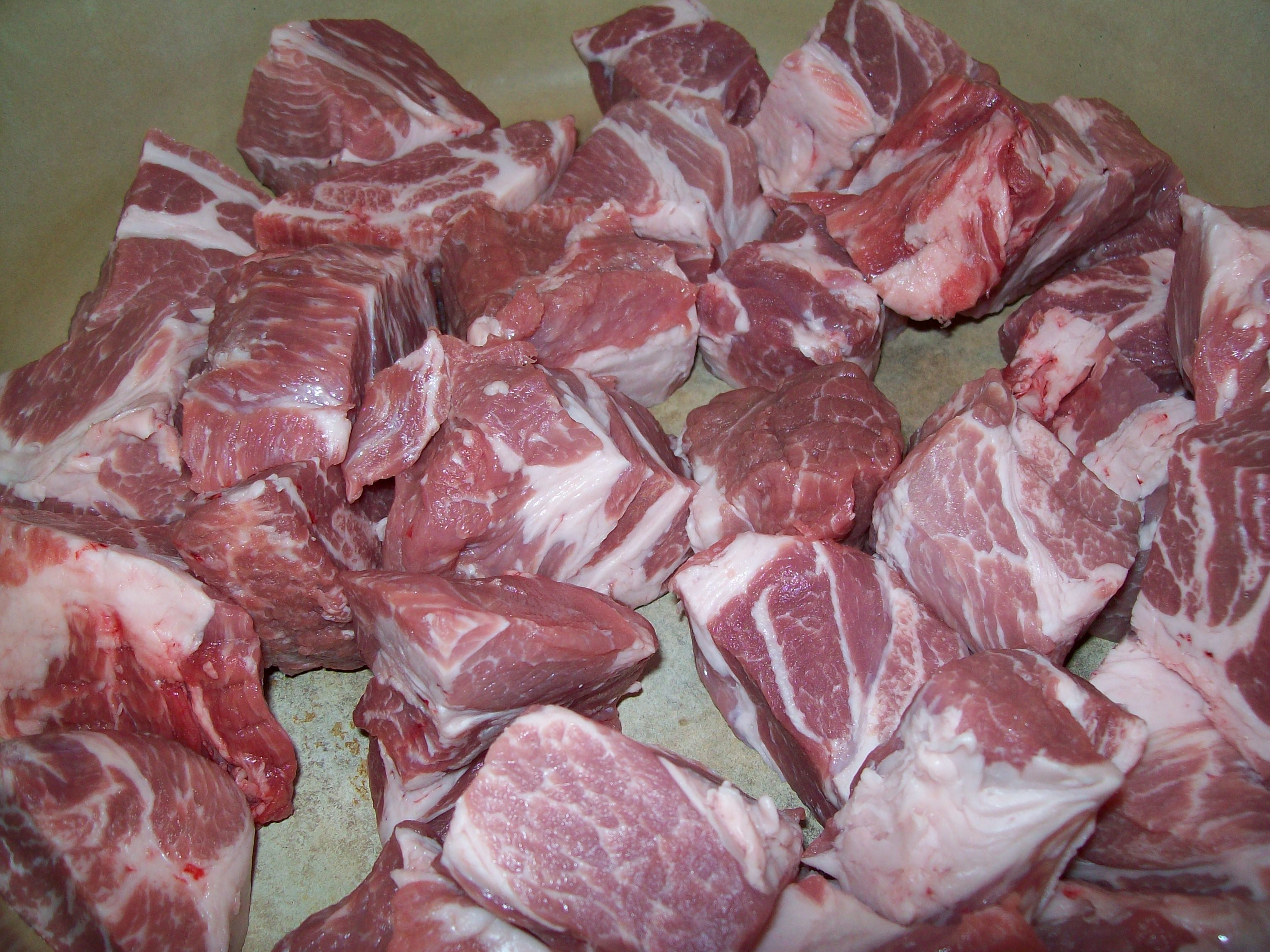 - 4 pound boneless pork butt, fat trimmed and cut into 2 inch cubes