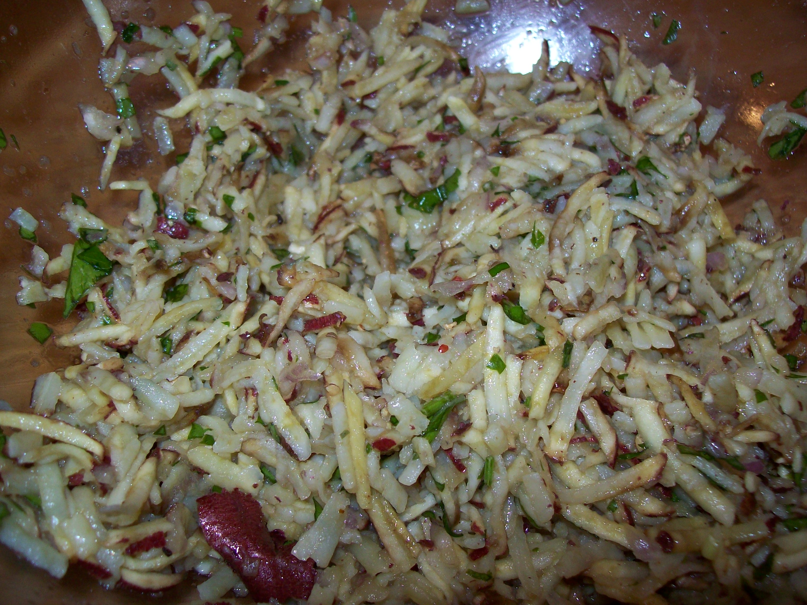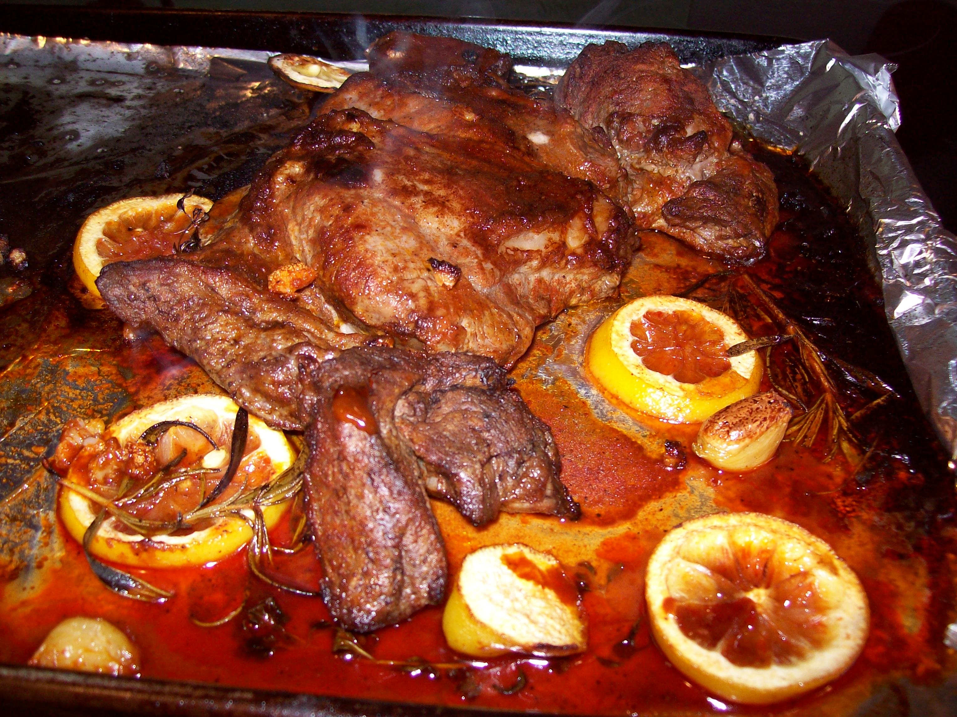 I used a 2 lbs. boneless leg so I cut everything by 1/3 except the fresh herbs I used more. But watch the cooking time it cooked quickly. Although Lyn likes lamb well done I would have liked it a little less well done. Even so it came out tasty and very tender.