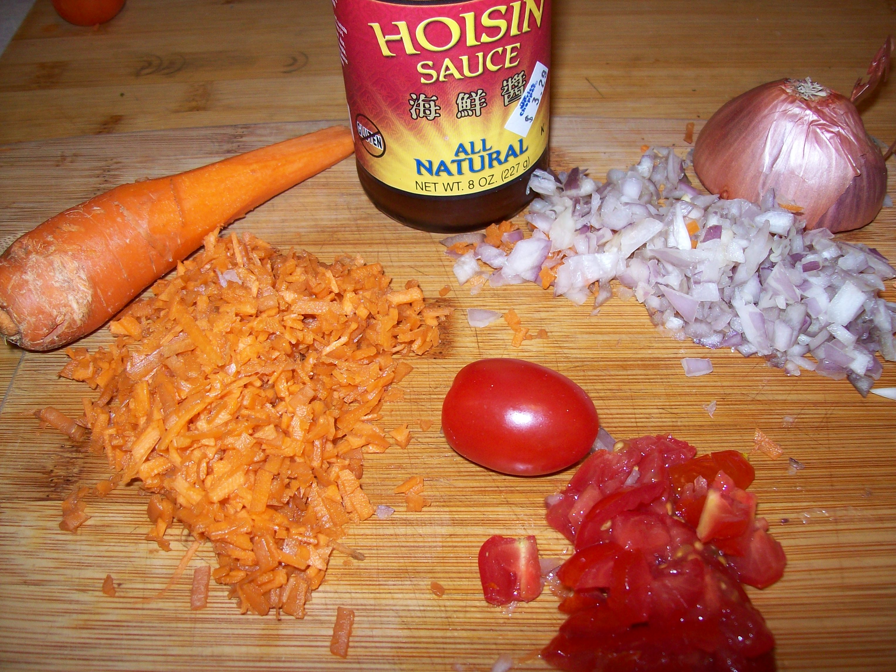Add tomatoes and about 1 tbs. Hoisin sauce