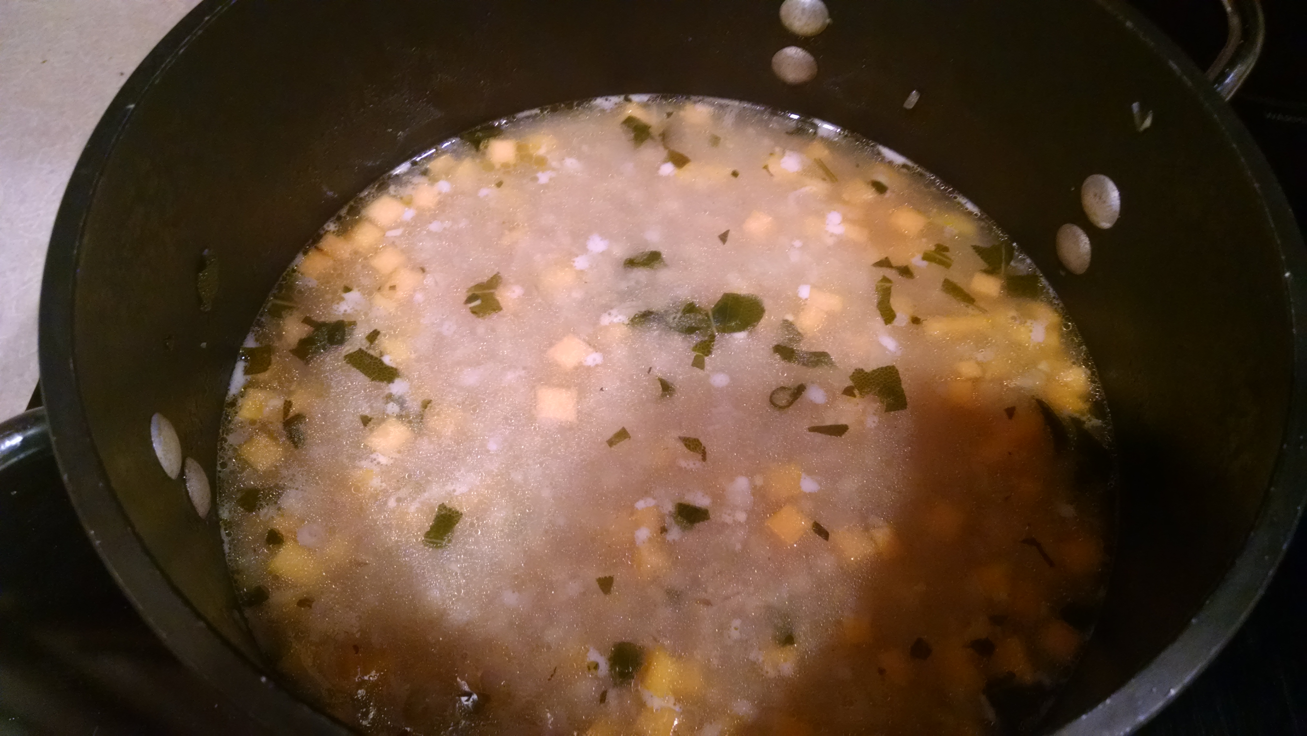 - 1 cup pot barley, rinsed (NOTE: Hulled barley works equally well in this recipe. You’ll need to adjust the cooking time as directed in Step One.)