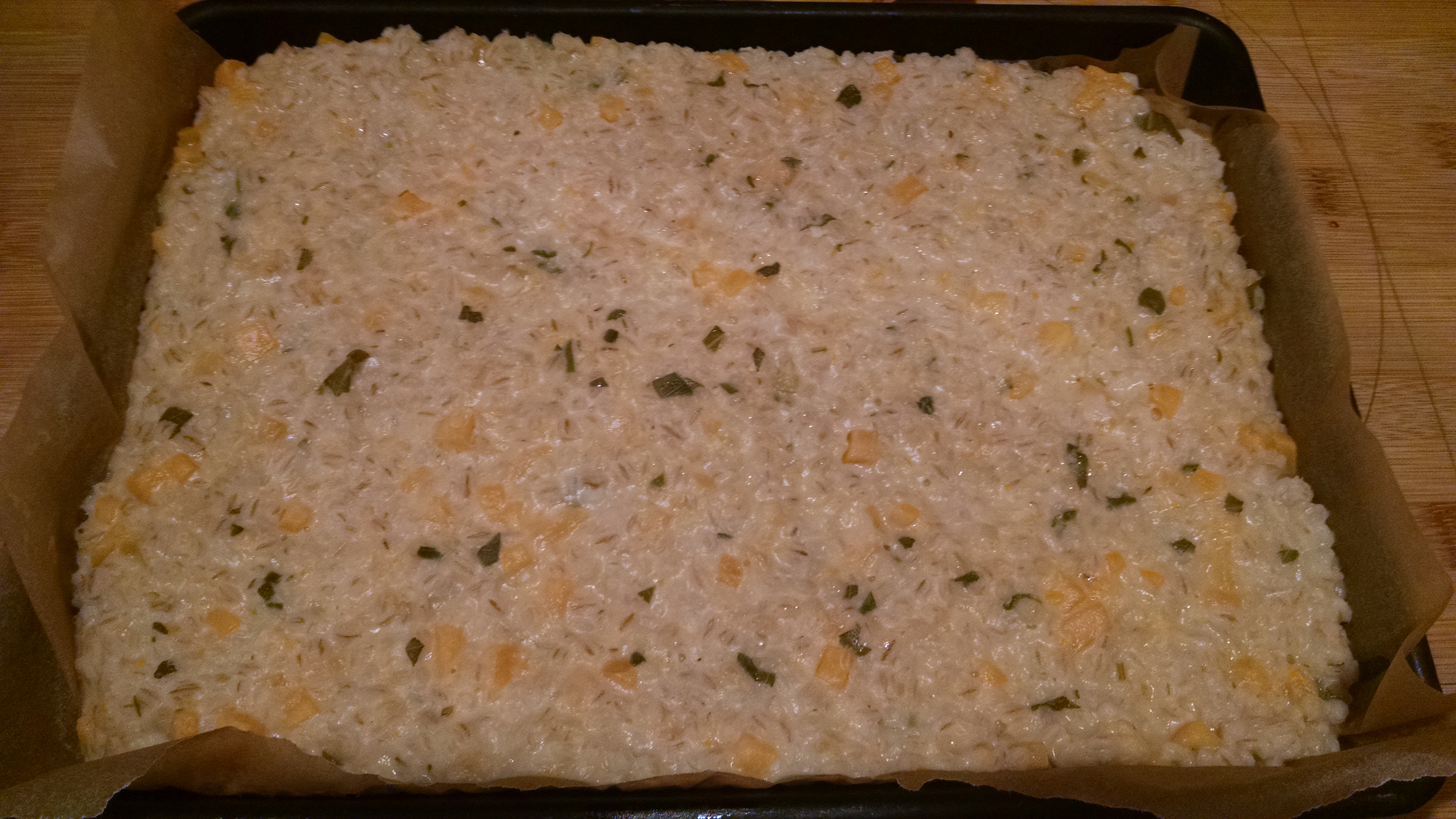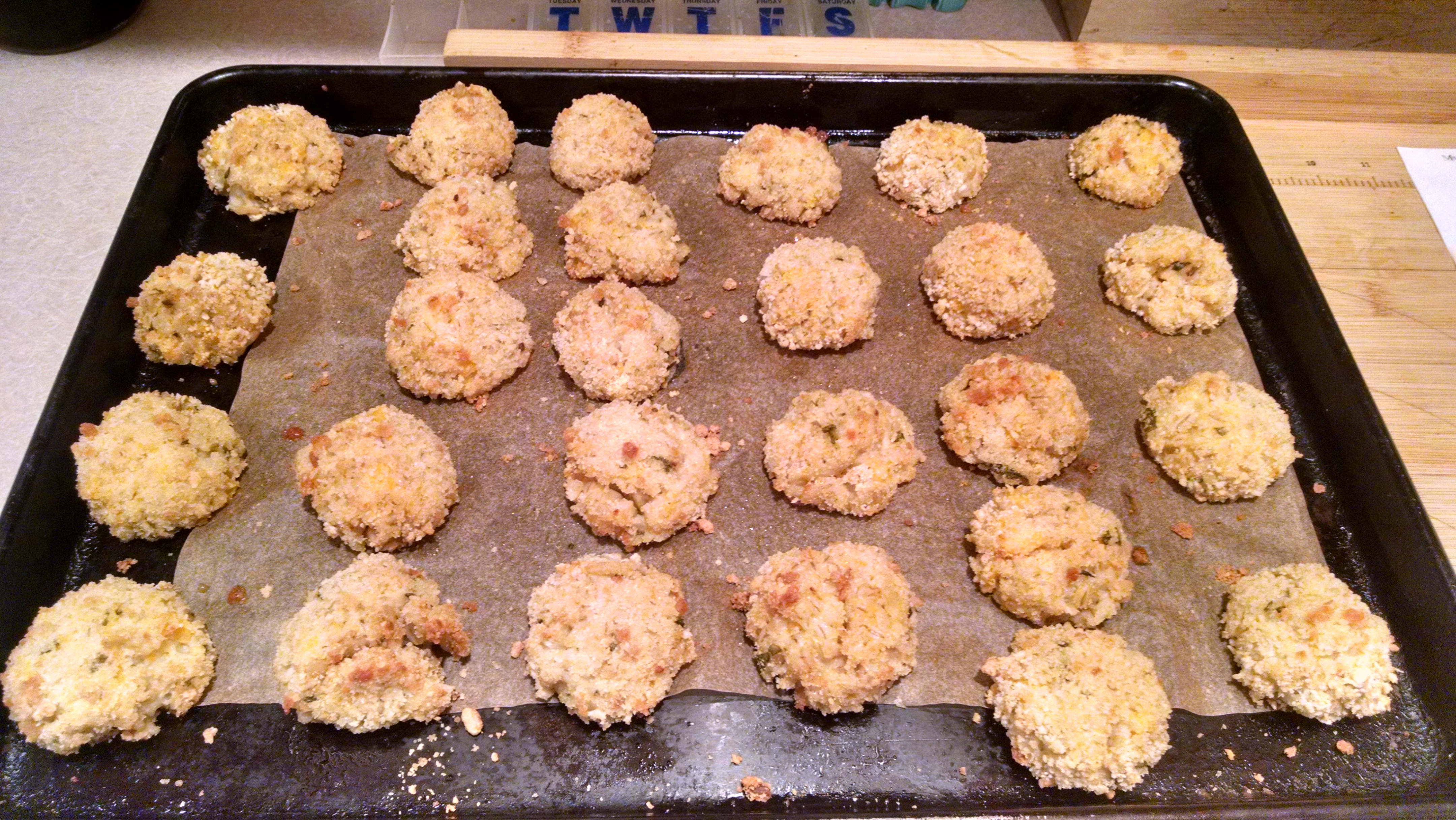 I served these on a bed of Lyn’s red pasta sauce with a drizzle across the top and then a sprinkle of grated cheese. YUM.