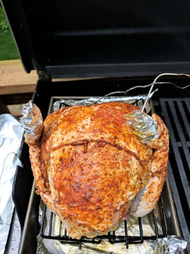 My days of living on Cape Cod you always heard the phrase the unofficial start of summer on memorial day weekend. Most think of the cape with hot lazy days on the beach or sailing across the bay for some ice cream in West Falmouth. Most forget that Memorial Day can be kind of cold and I always suggest sweatshirts. Well today is not disappointing here in Milford it is a raw 51 degree and they are forecasting rain. The Milford Facebook page for Milford community is a buzz with does anyone know it the parade is rain or shine? We moved into Yale Drive many moons ago and this was our welcome to Milford event even ran into the past owners of the house. Now I work down town and get a birds eye view of most Milford parades and fondly remember walking along side the band with water bottle in hand ready to rescue a thirsty member. Anyway before I get to nostalgic or totally drawn into the sound of the waves on the beach, back to my point. Lyn had a hankering for some turkey and we found a bone in breast at the store so I decided to BBQ it and welcome summer to our deck.