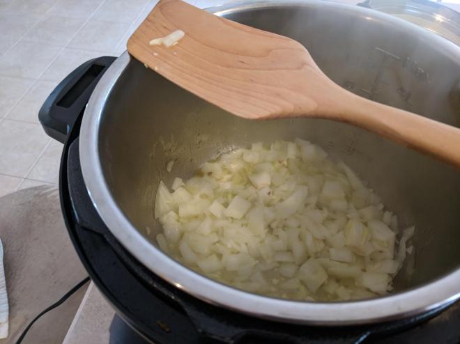 In the instant pot, sauté the onions with 2 tablespoons of olive oil, the butter and red pepper flakes for 10 minutes, until the onions start to brown then add and garlic for about 30 seconds . You’ll kow when you get that great garlic smell. Add the canned tomatoes, basil and or cilantro, thyme, and chicken stock. Add the oven-roasted tomatoes, including the liquid on the baking sheet. Seal and press soup button it defaulted to 30 minutes. I was going to try it with venting but I screwed up so that will be next time.