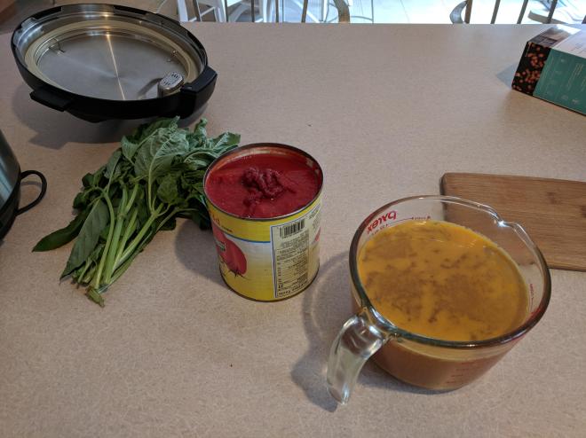 Market Basket had plum tomatoes for 99 cents and it was a raw day so………Most think of the instant pot recipe as quick and easy, throw it in and press a few buttons and walk away. This is one of my favorite soups and I figure I would try it in the Instant Pot but the prep like roasting the tomatoes does take some time. I suppose one could buy some roasted tomatoes to skip that step there are even some smoked fired roasted tomatoes would also save about 40 or so minutes. I also did my own smoked tomatoes last summer and here is the stove top recipe basically the same.
