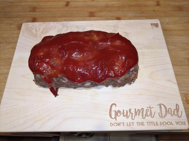 Shape into approximately 8×4-inch loaf on the sheet pan, then spread the ketchup over the top.