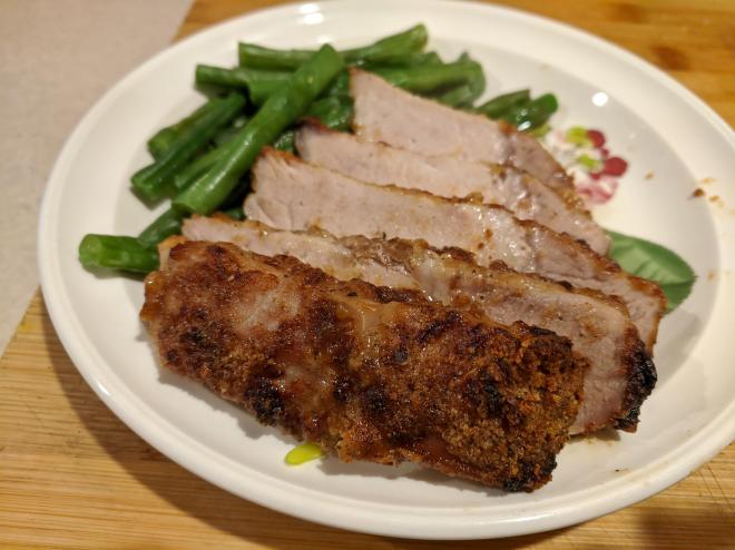 I love pork chops, bone in, boneless, stuffed, fried mostly like the taste of the crunchy fat…shhhh don’t tell Lyn she would not approve. Anyway, I wanted to try something different in the air fryer so I looked at a lot of recipes and came up with my take. My only complaint is that it was maybe a little too salty, Cooking Channel salty if you know what I mean. But parmesan cheese does have a lot of salt. Any suggestion on the salt let me know.