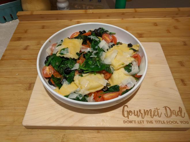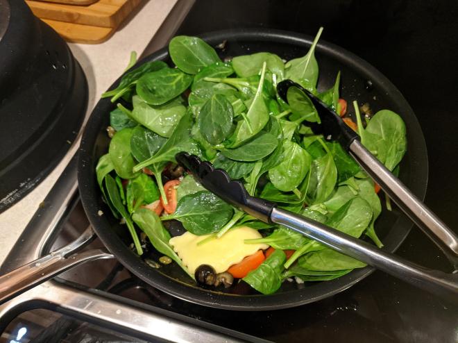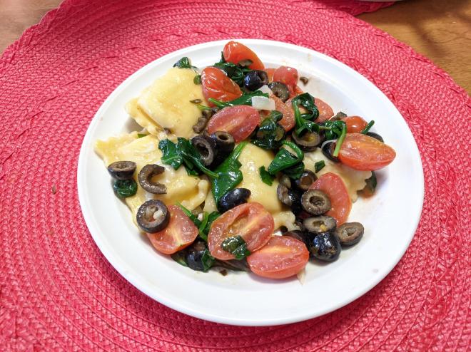 add ravs, tomatoes and spinach and toss to coat until spnage starts to wilt.