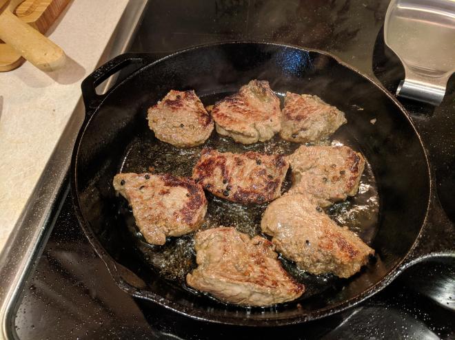 First let them marinate in fresh ginger, Worcestershire sauce, brown sugar, and Dijon mustard for an hour or a day. Then sear them in a hot skillet — this takes five minutes — and make a pan sauce with mushrooms and red wine. The downside is that the meat can be expensive, because you’re buying ends of high-priced cuts. The upside is that dinner is ready in minutes and though it’s a little retro, it’s delightfully familiar and delicious.
