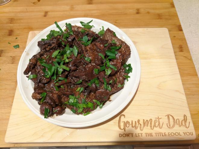 6. Return the steak tips to the pan with any juices that accumulated in the bowl. Cook for a few minutes, stirring often, or until the steak tips are heated through. Sprinkle with parsley.
