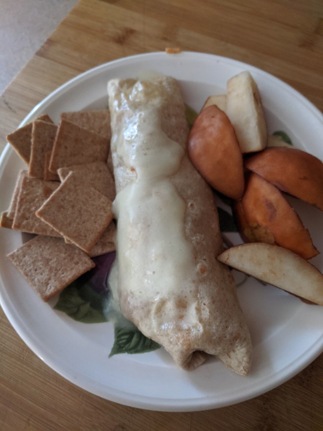 HAd some of the filling left so today for lunch I made a burrito of sorts. Added salsa and some some cheddar cheese to top it off.