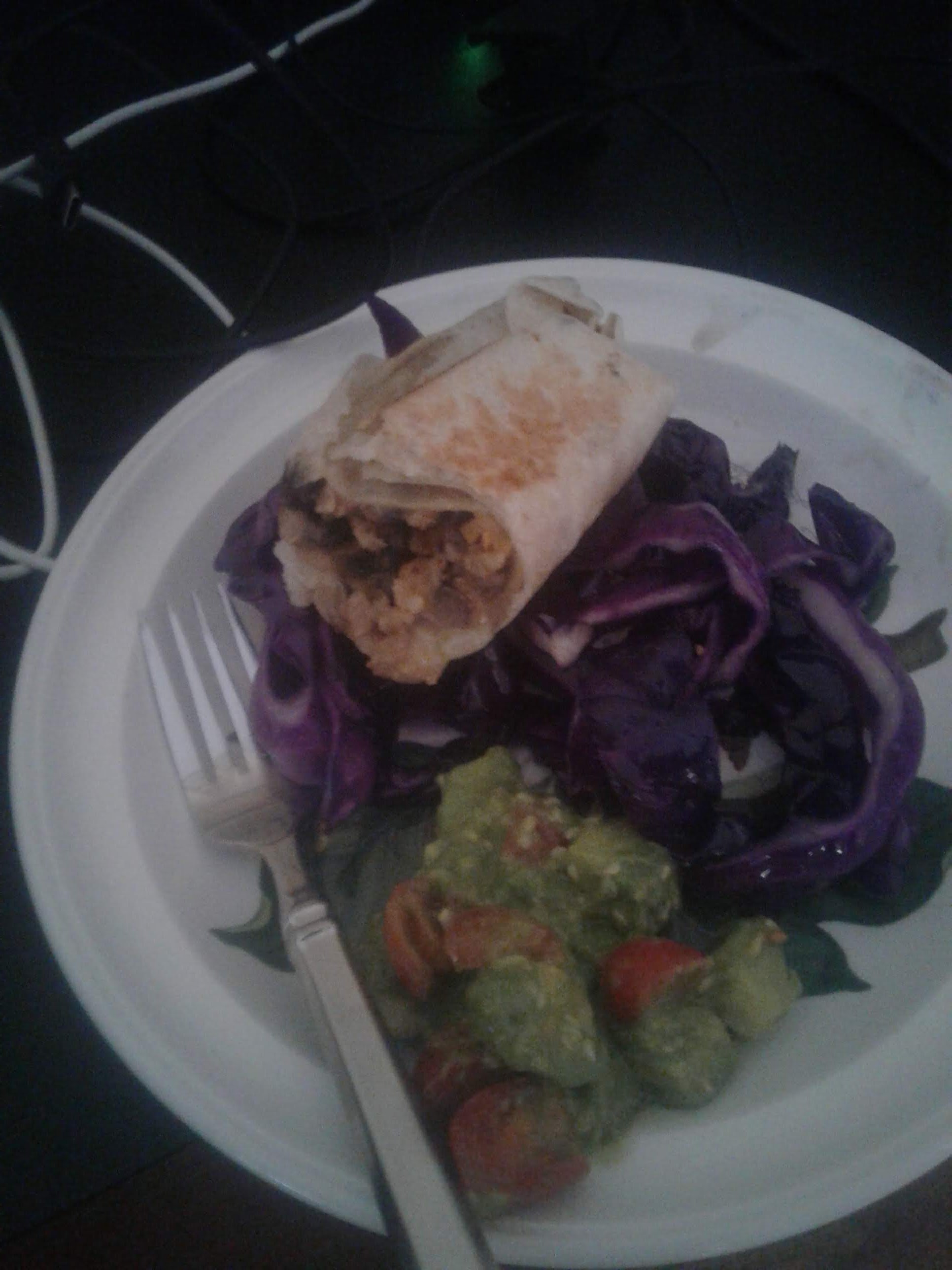 We love the Butternut Squash and Black Bean Burritos and it was veggie night so I added some roasted cabbage and Fennel to it. Don’t knock the burrito until you try them they are satisfying and good.