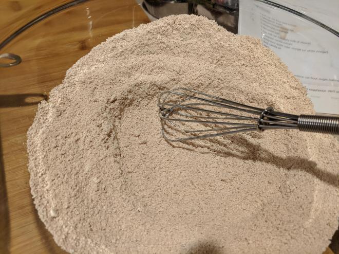 Slowly add wet ingredients into dry ingredients and mix until it just comes together. (do not overmix)