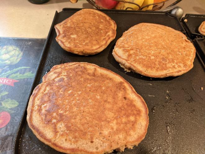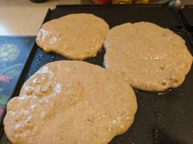 Let the pancakes bubble before flipping. Cook until golden brown on both sides.