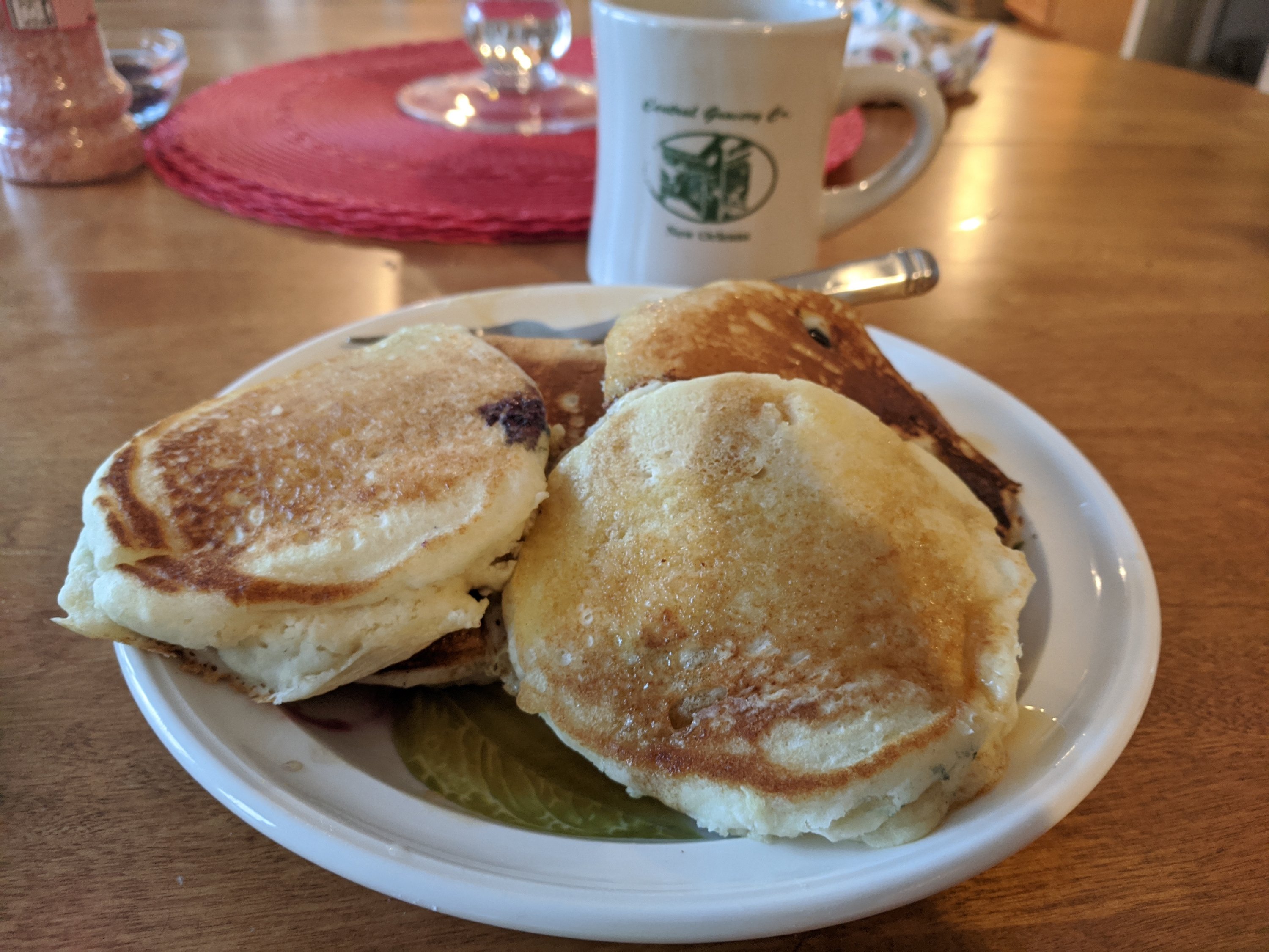I also mashed a bunch of blueberries and heated in some maple syrup.