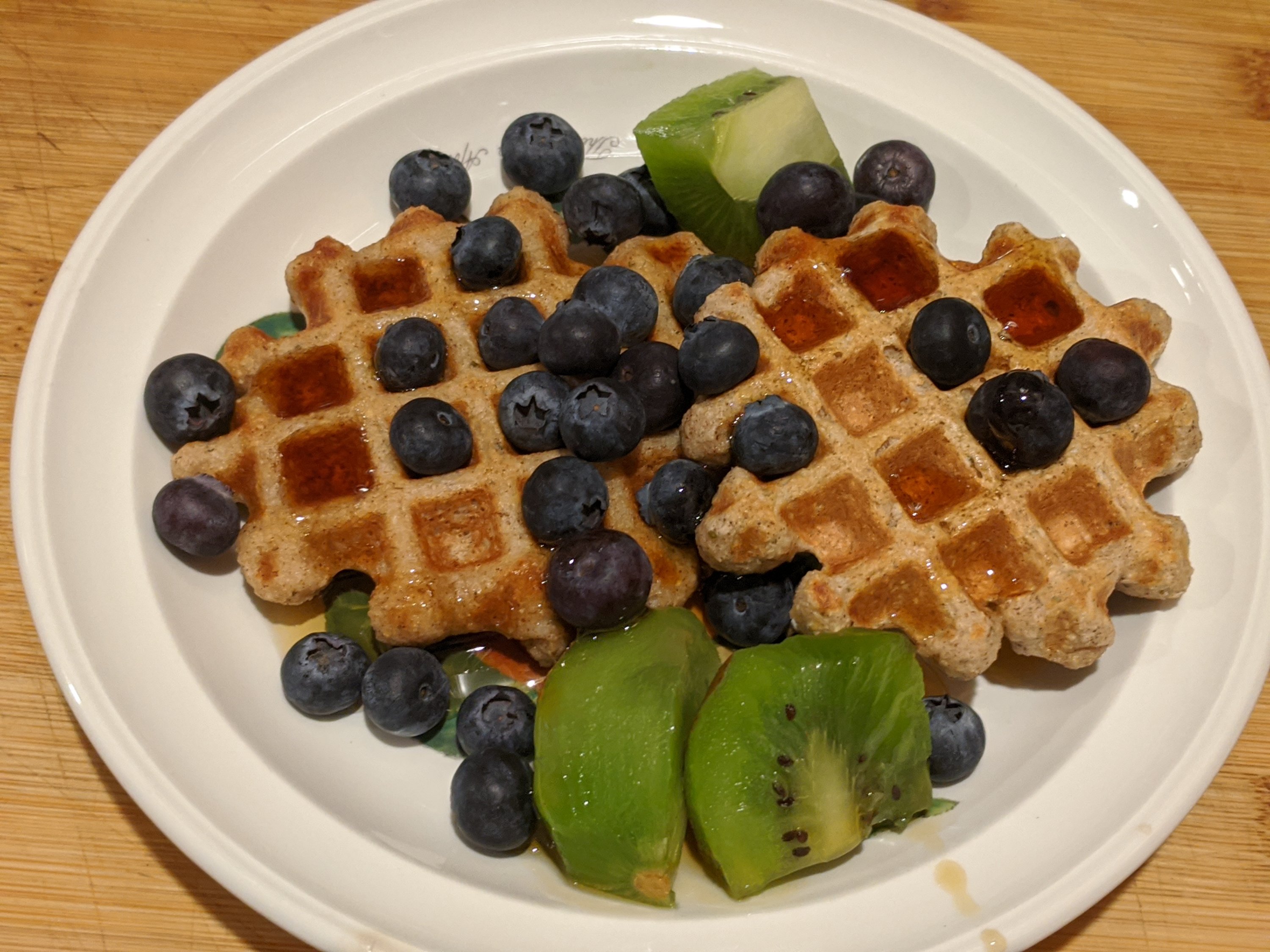 Lyn made some hazel nut milk the other day and dried out the leftover pulp then ground in food processor to make flour. With this she made some of her waffles. We have one of those mini single serve waffle makers, she will make a batch and freeze them as a make ahead ready to reheat breakfast.