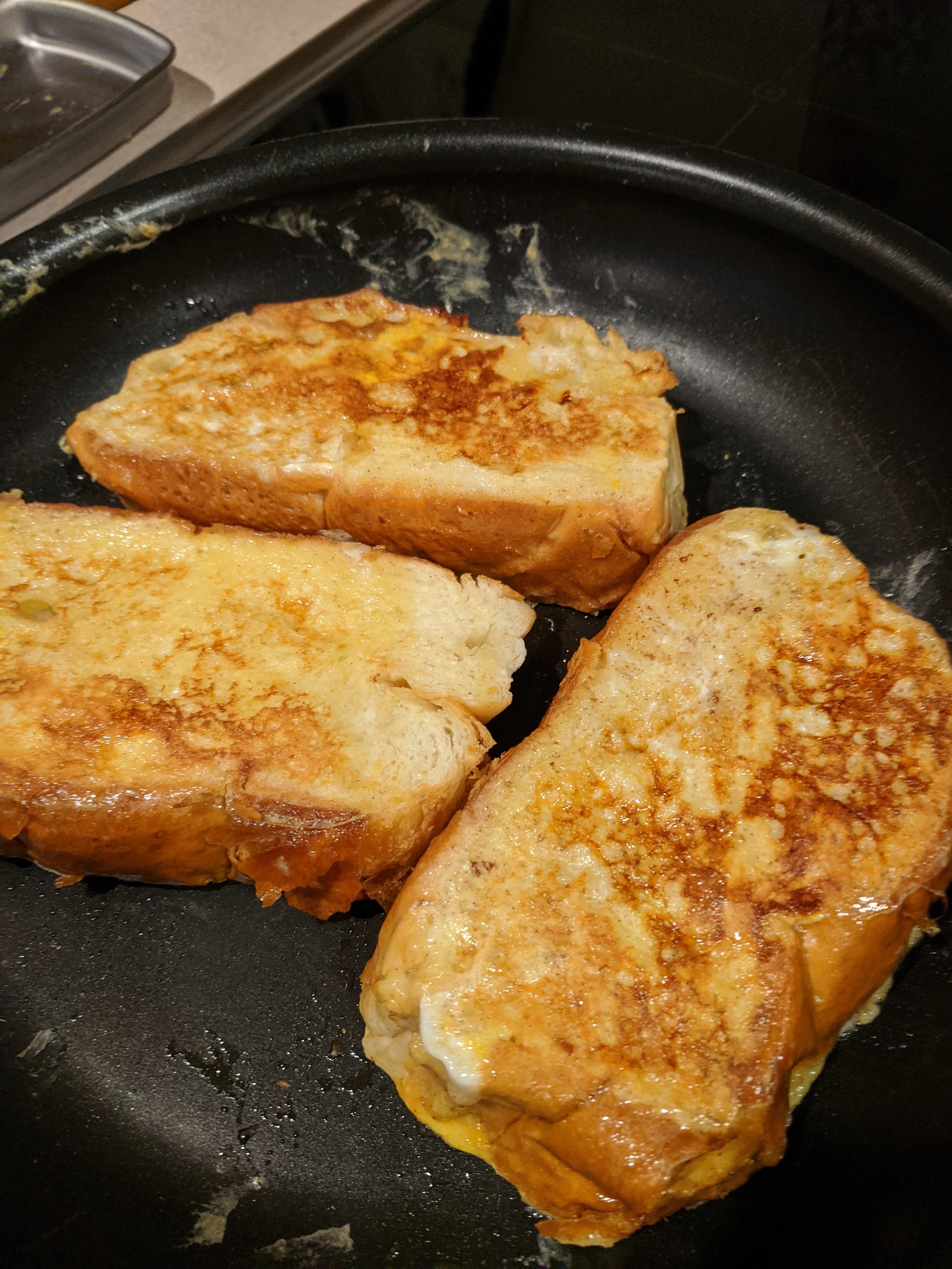 Fortunately last Tuesday after my mindful steps class at the senior center there were eggs and bread out for the taking each egg package had 10 eggs so this dish was sent by the universe. That same morning Lyn found this in the Globe and asked if I would make it, it was well worth it the little effort it took.