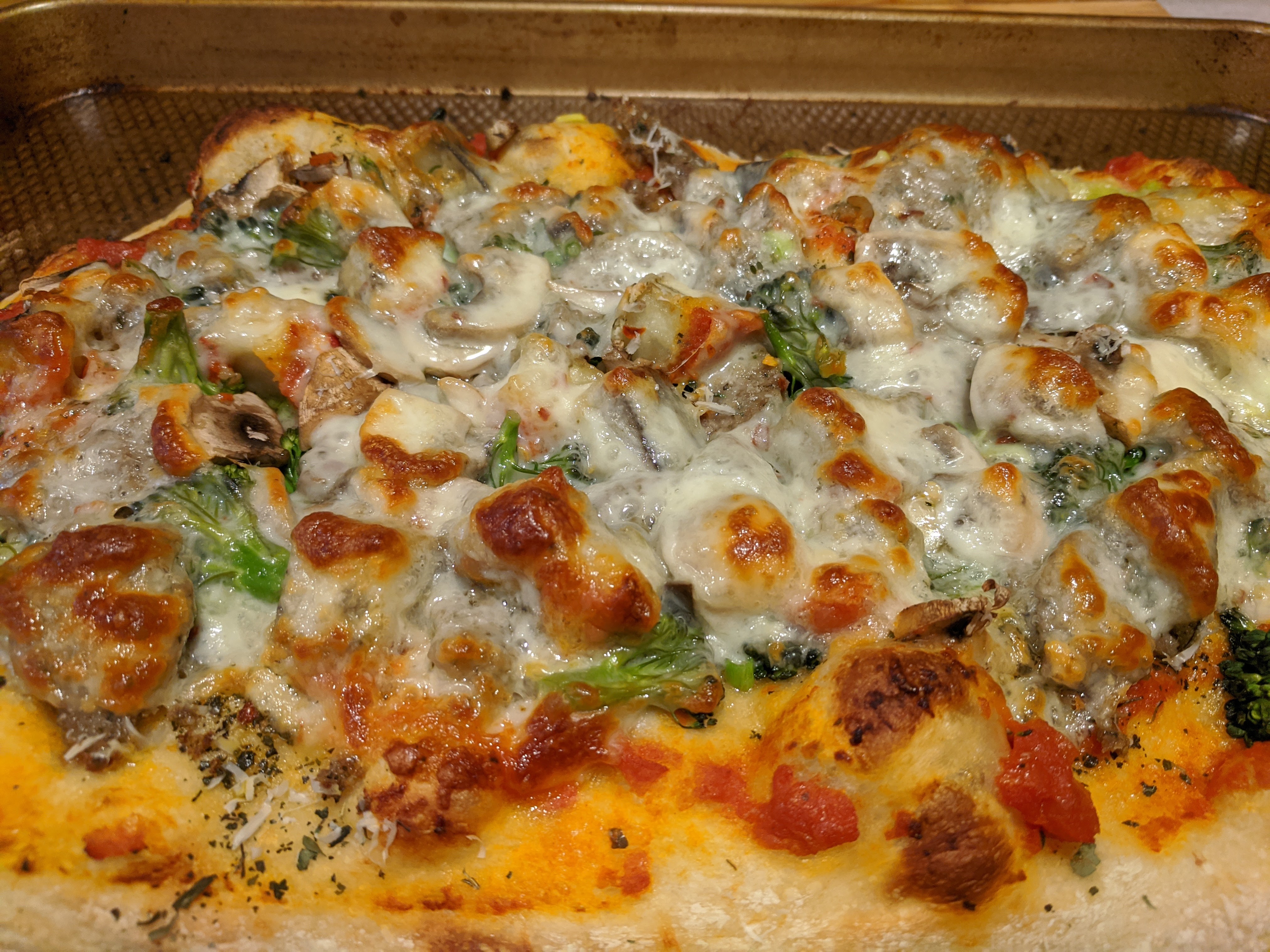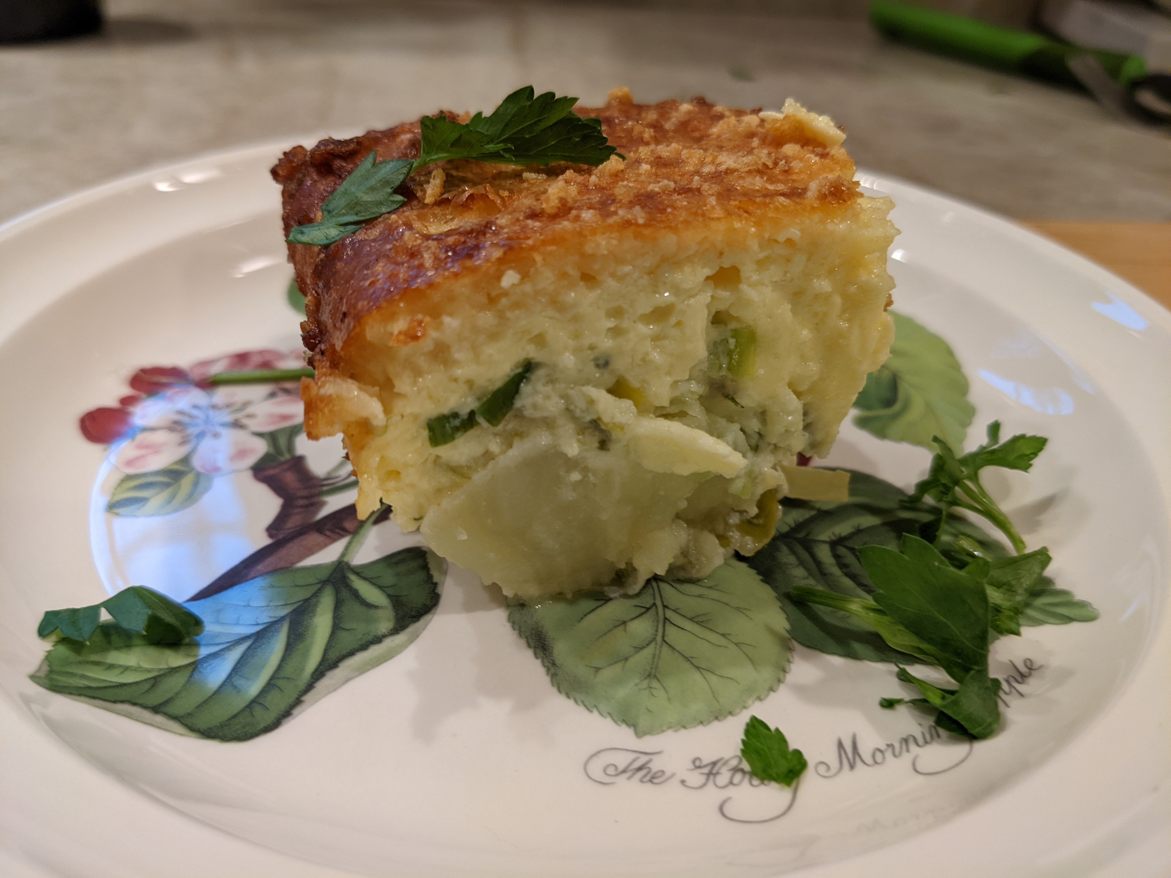 Clean out the frig frittata egg, cheese, ham, cauliflower, mushroom, caramelized onions, red bell pepper, potato crust on bottom #cooking