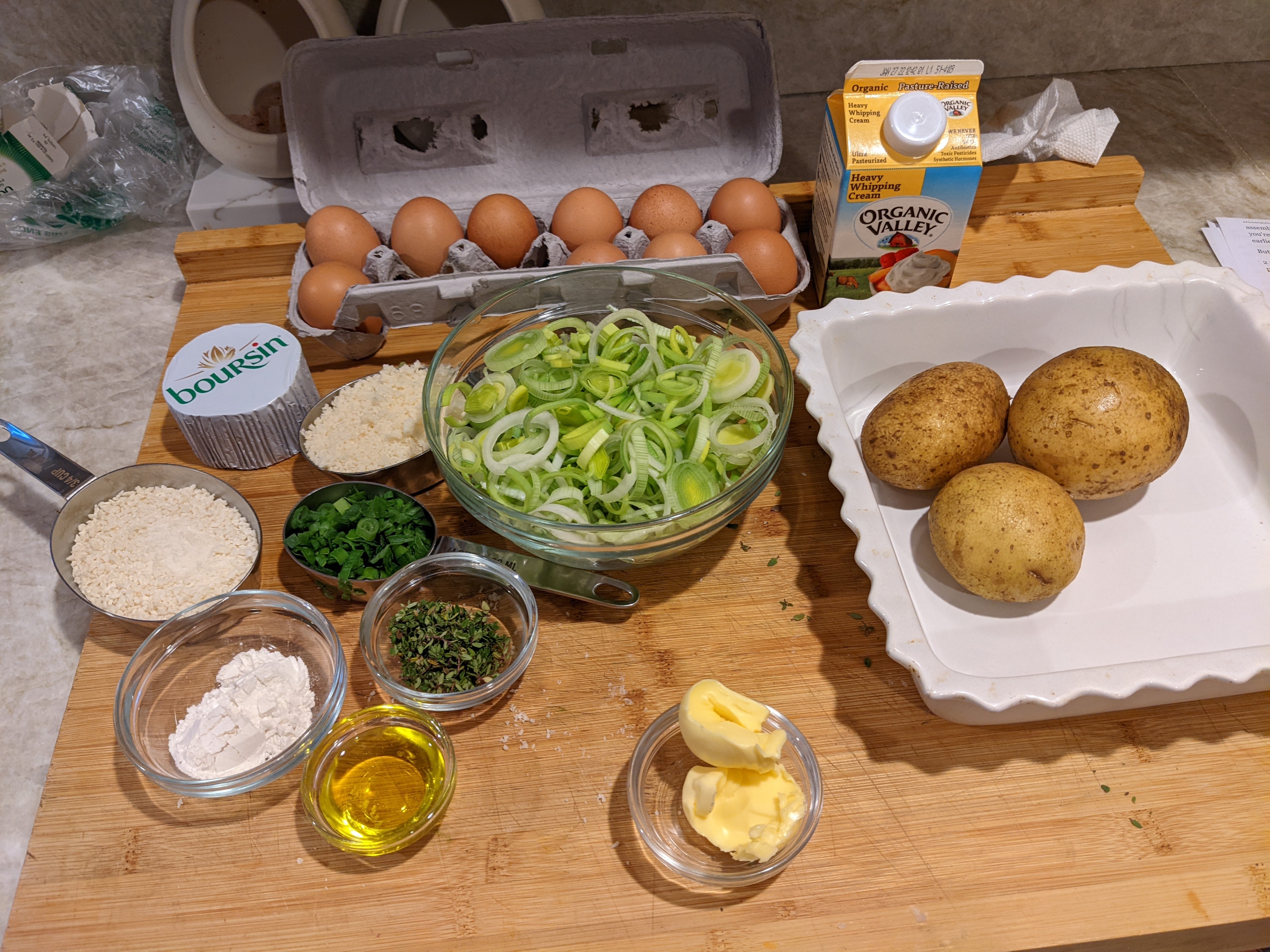 Add the leeks to the potatoes with the Boursin and chives. Stir gently.