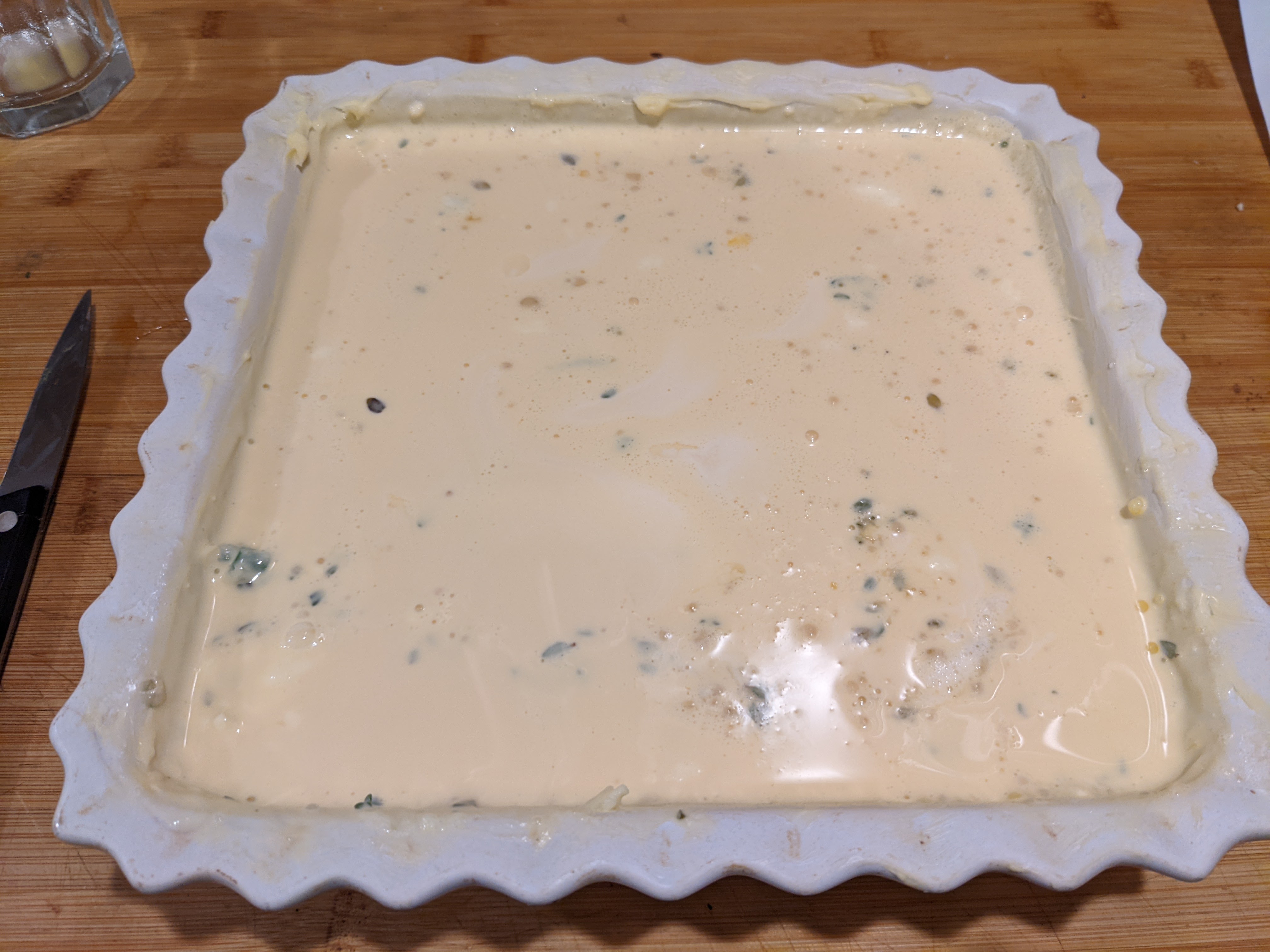 In a bowl, whisk the eggs, flour, cream, and a pinch each of salt and pepper.
