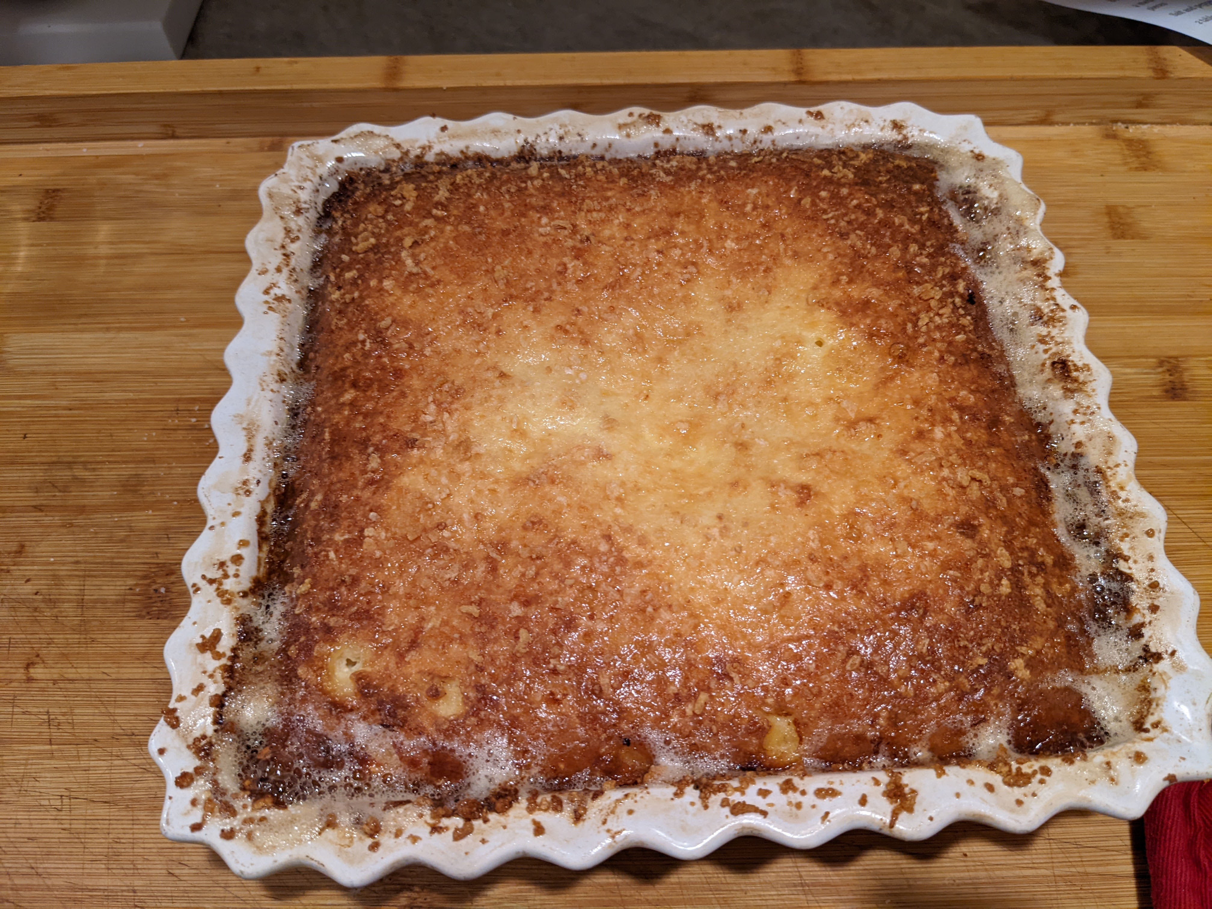 Remove the dish from the oven and let it rest in a warm place for 5 minutes. Cut into squares for serving.
