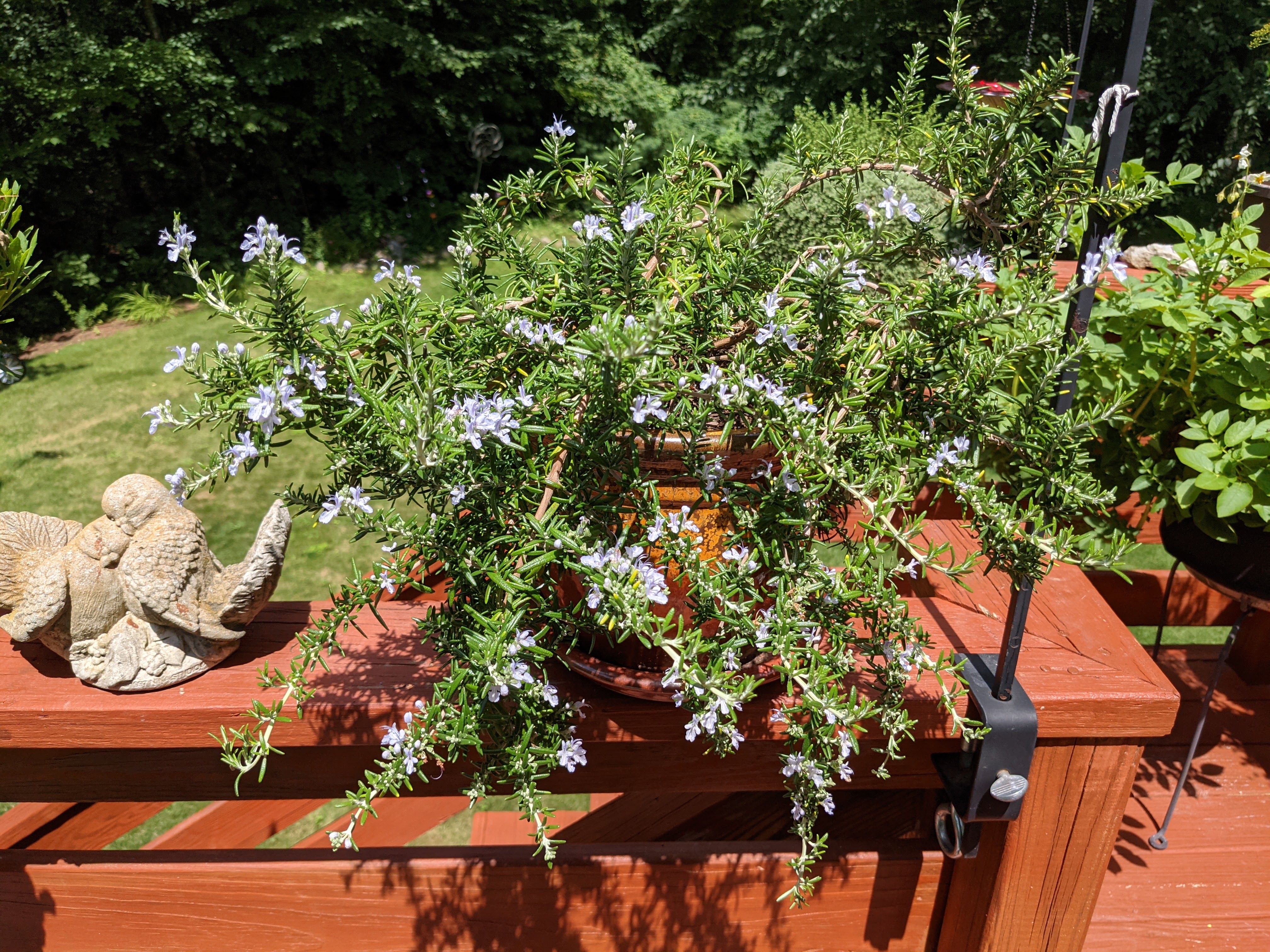 I could go on a long babble about rosemary blossoms but the thing I like most is my wife’s face when she see them.