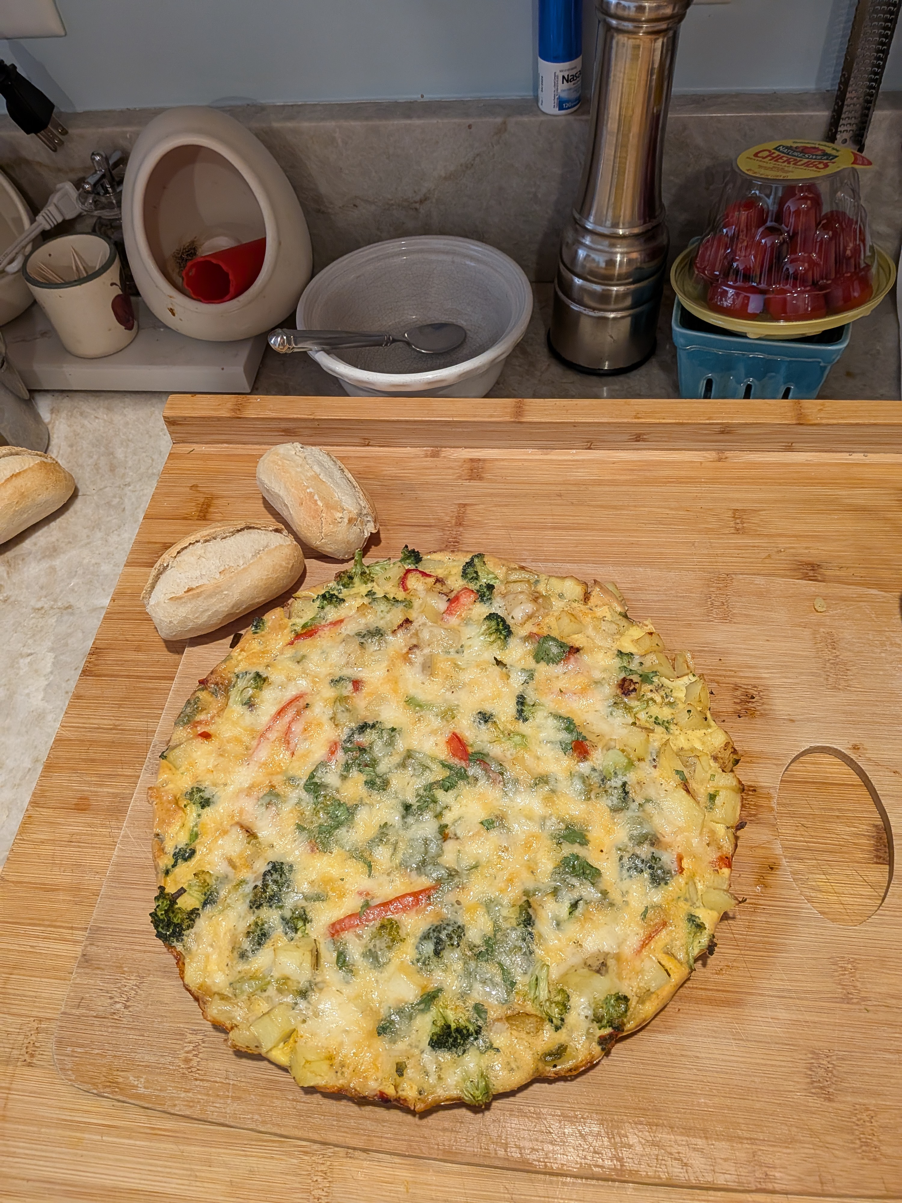 Slide the frittata out onto a serving board and cut into wedges.