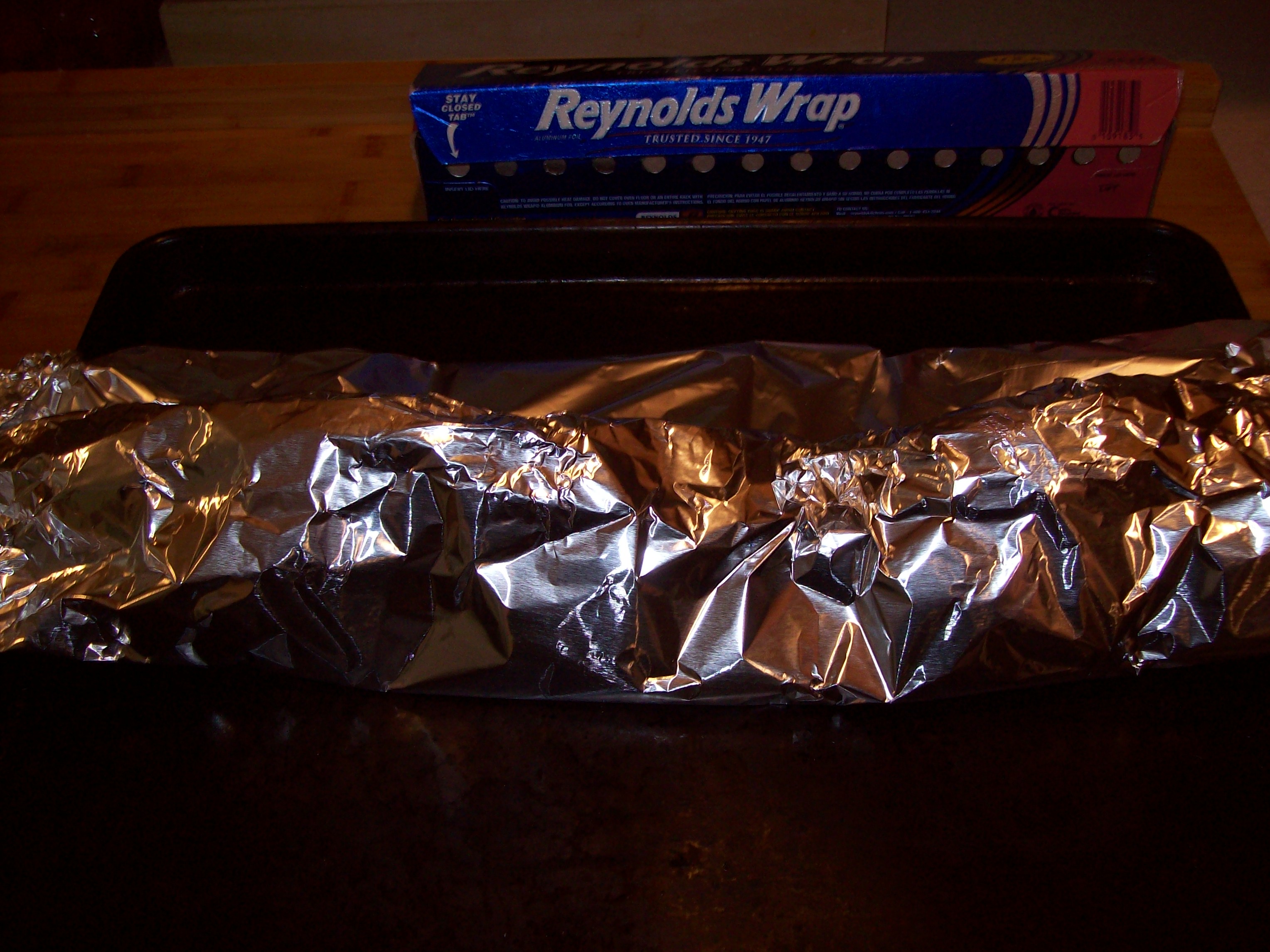 I take two sheets of aluminum foil and join along the sides to make one large one, repeat and lay the 2nd on top.