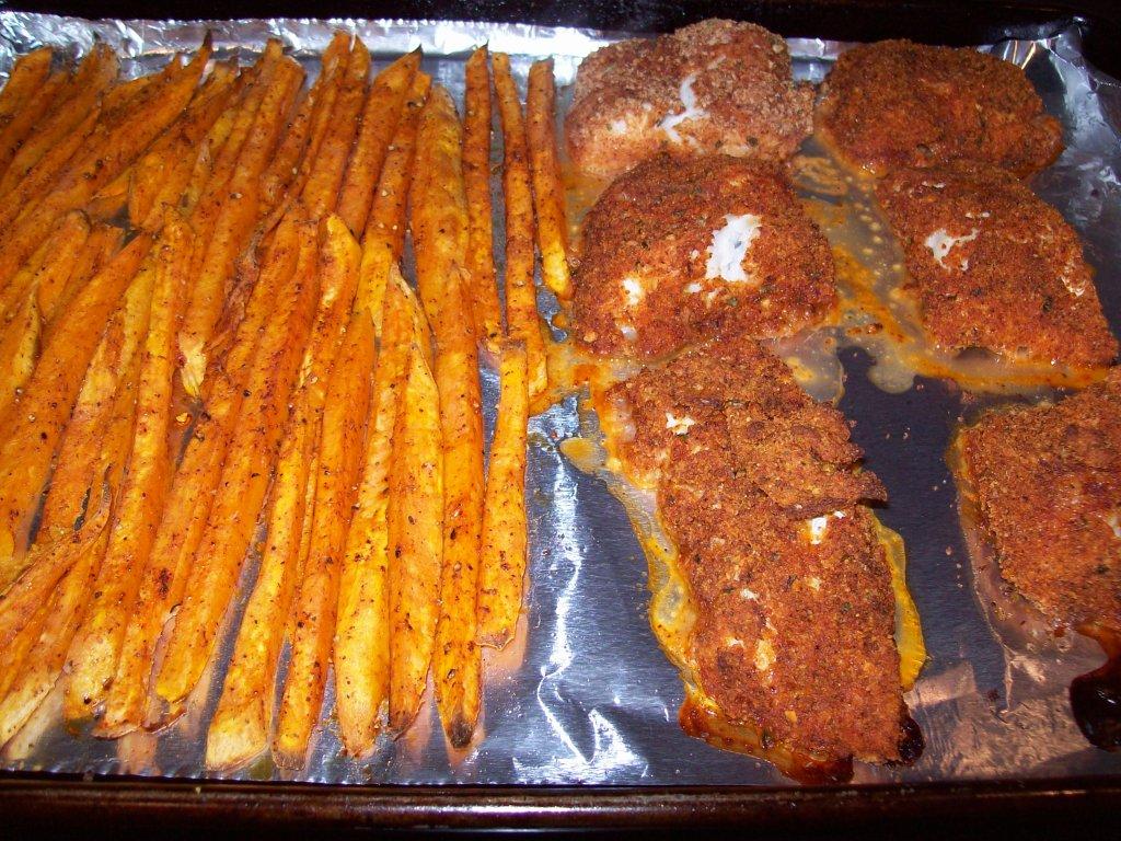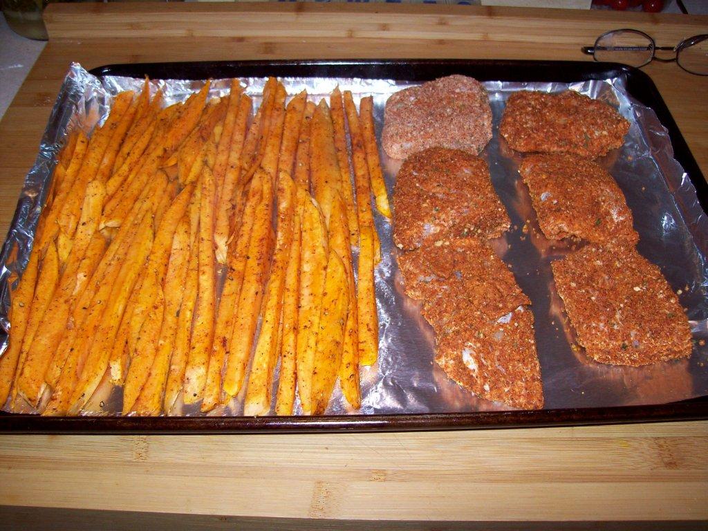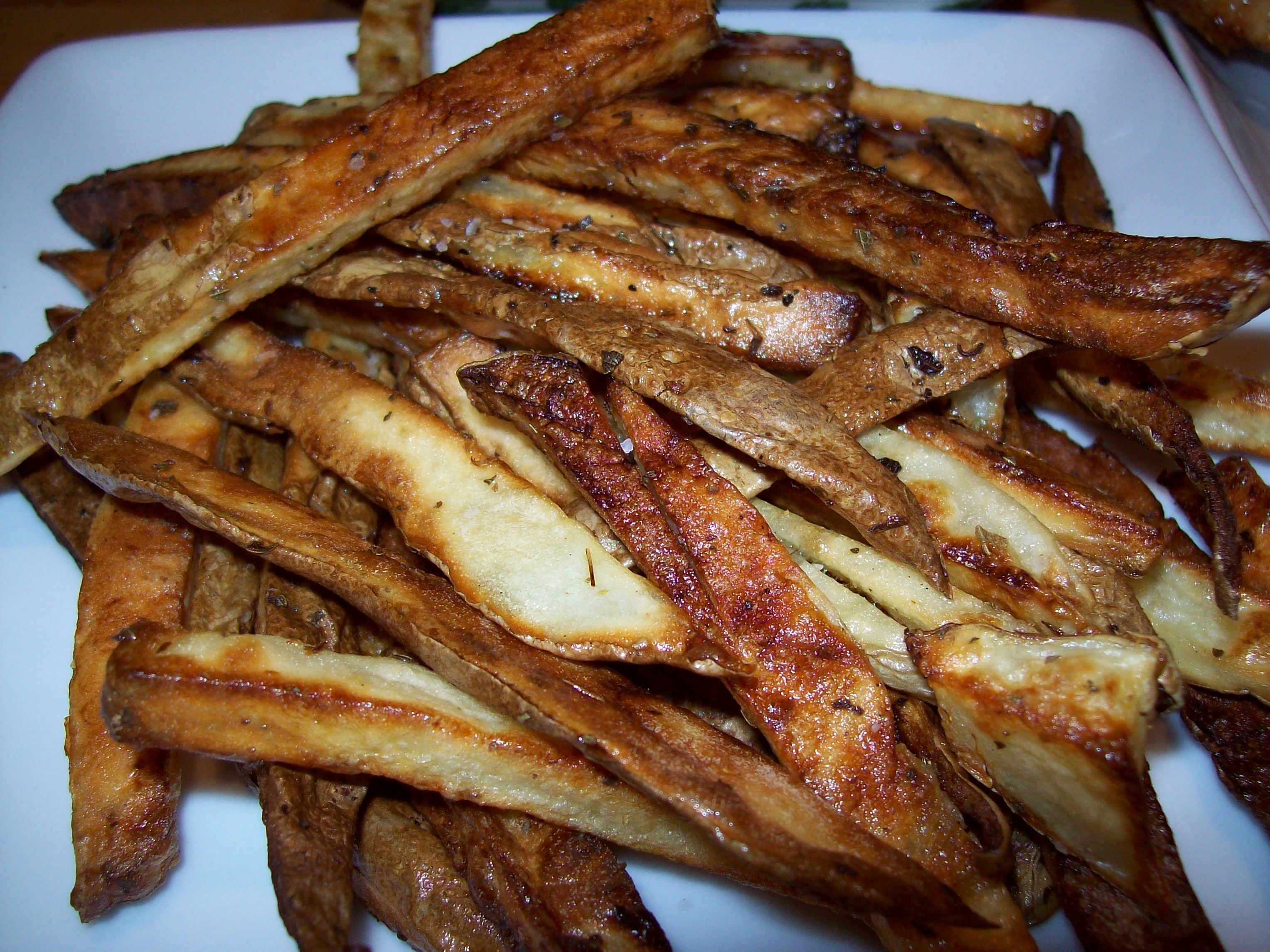 When cool to touch lightly toss in some olive, since your hands are covered with oil rub the pan to coat and then lay out the fries in single layer. It took about 30 minutes to brown up to a crunchy nice oven bake fry, I was satisfied.