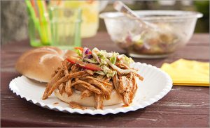 The slaw that tops these burgers is quite basic. For added flavor, add some seasoned rice wine vinegar, minced cilantro, hot chili oil or hot sauce