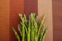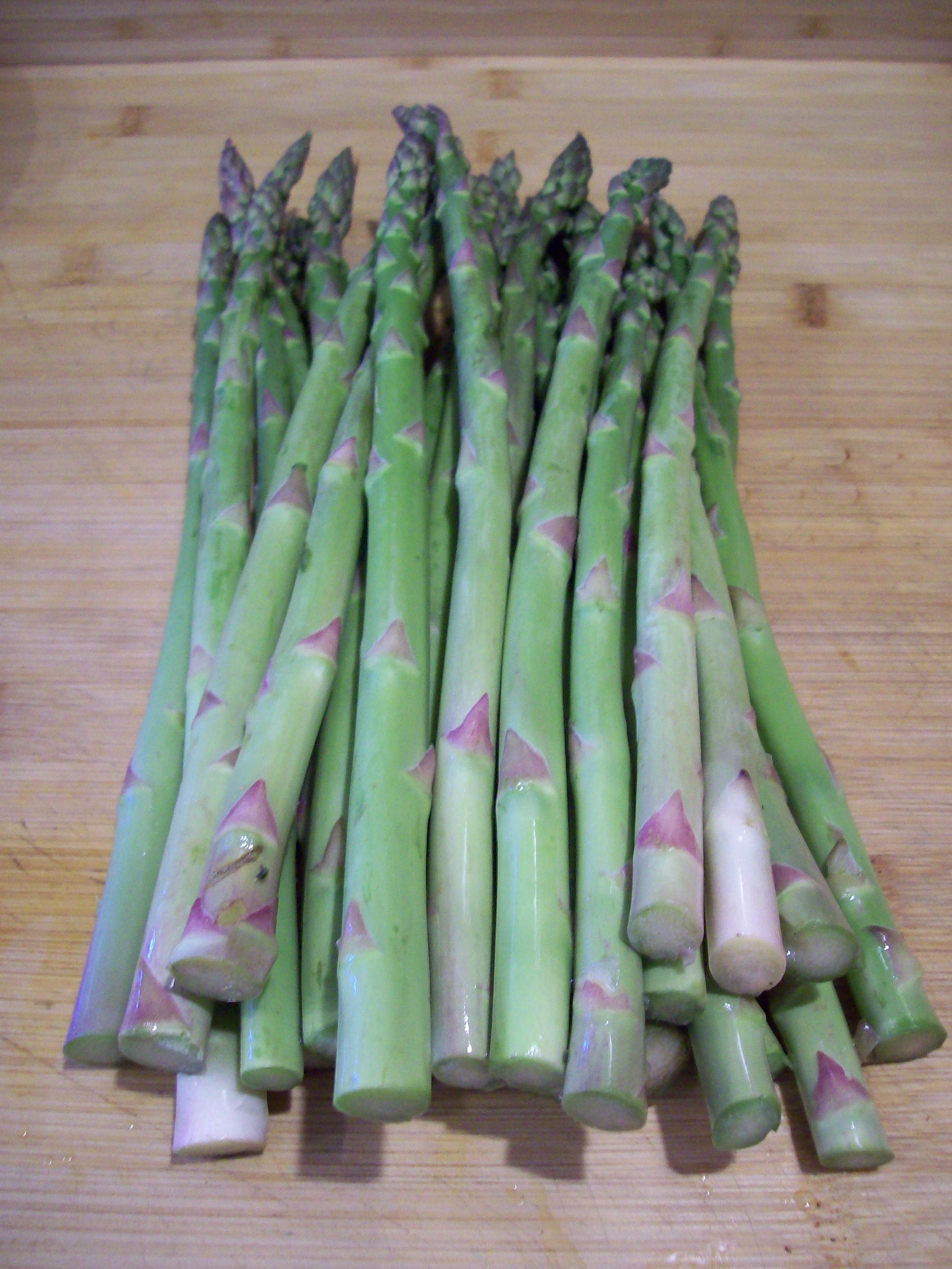 3. Bring a medium pan of water to a boil, reduce to a simmer and throw the asparagus in for about 2 or 3 minutes. Drain them, run them under cold water and dry them.