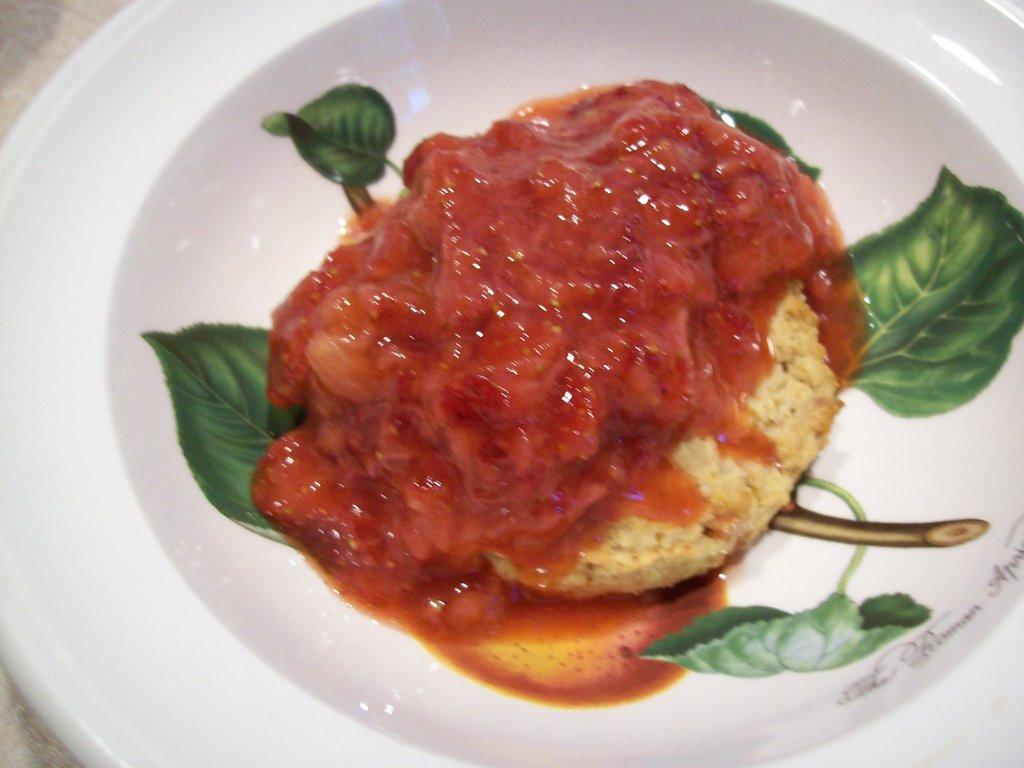 spring has come and almost gone and to me it seems that the Rhubarb is late to the shelfs this year but the other day we hit it right he went in the back and made a package for us. Wholefoods had some strawberries on sale so everything worked out and via Barefoot Contessa we had our I just Love the taste of Rhubarb