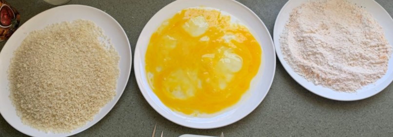 I put flour in one bowl, beat an egg with some hot sauce in another, then gluten free panko bread crumbs in the last, you can make this all gluten free on not at all.