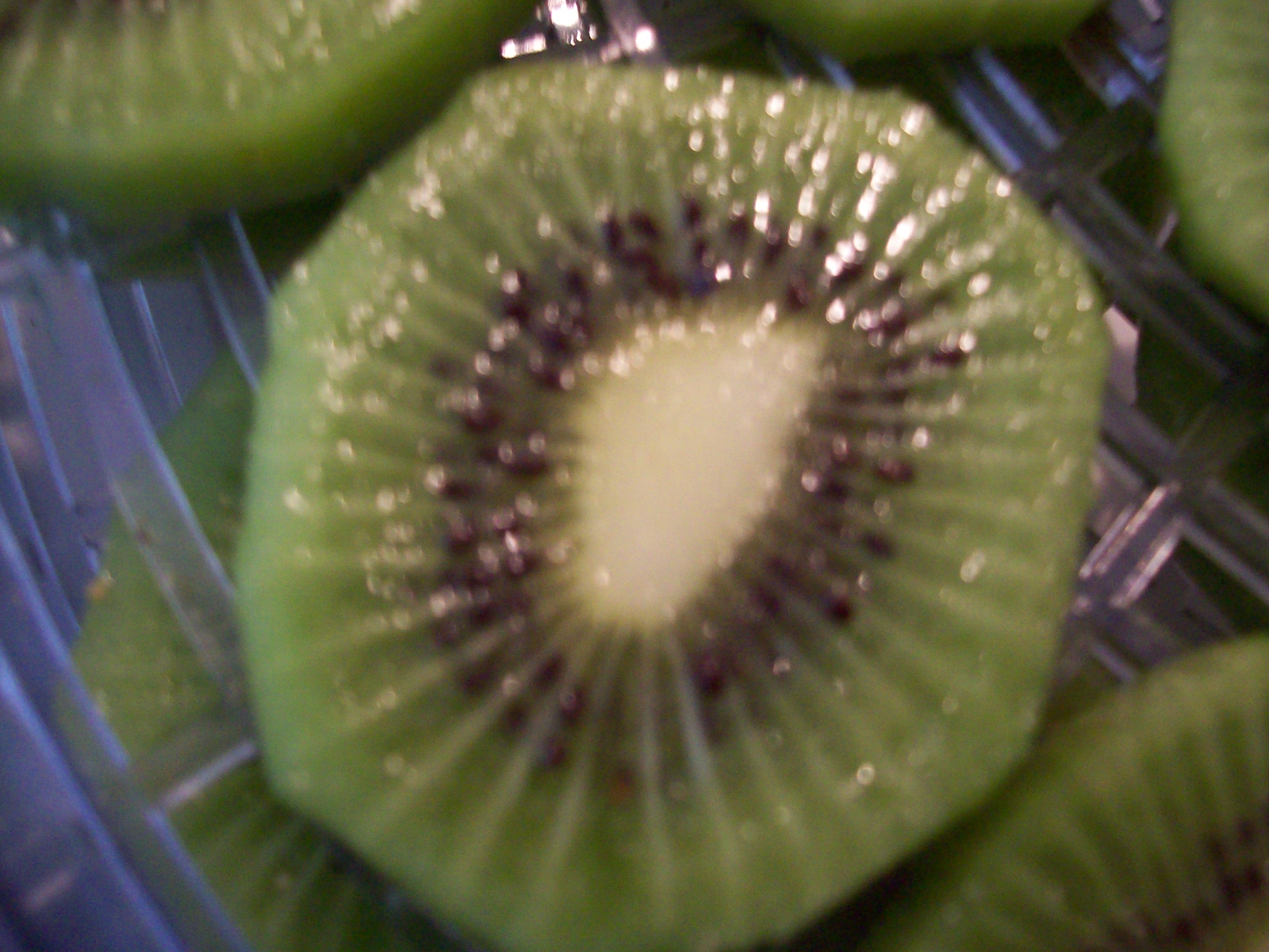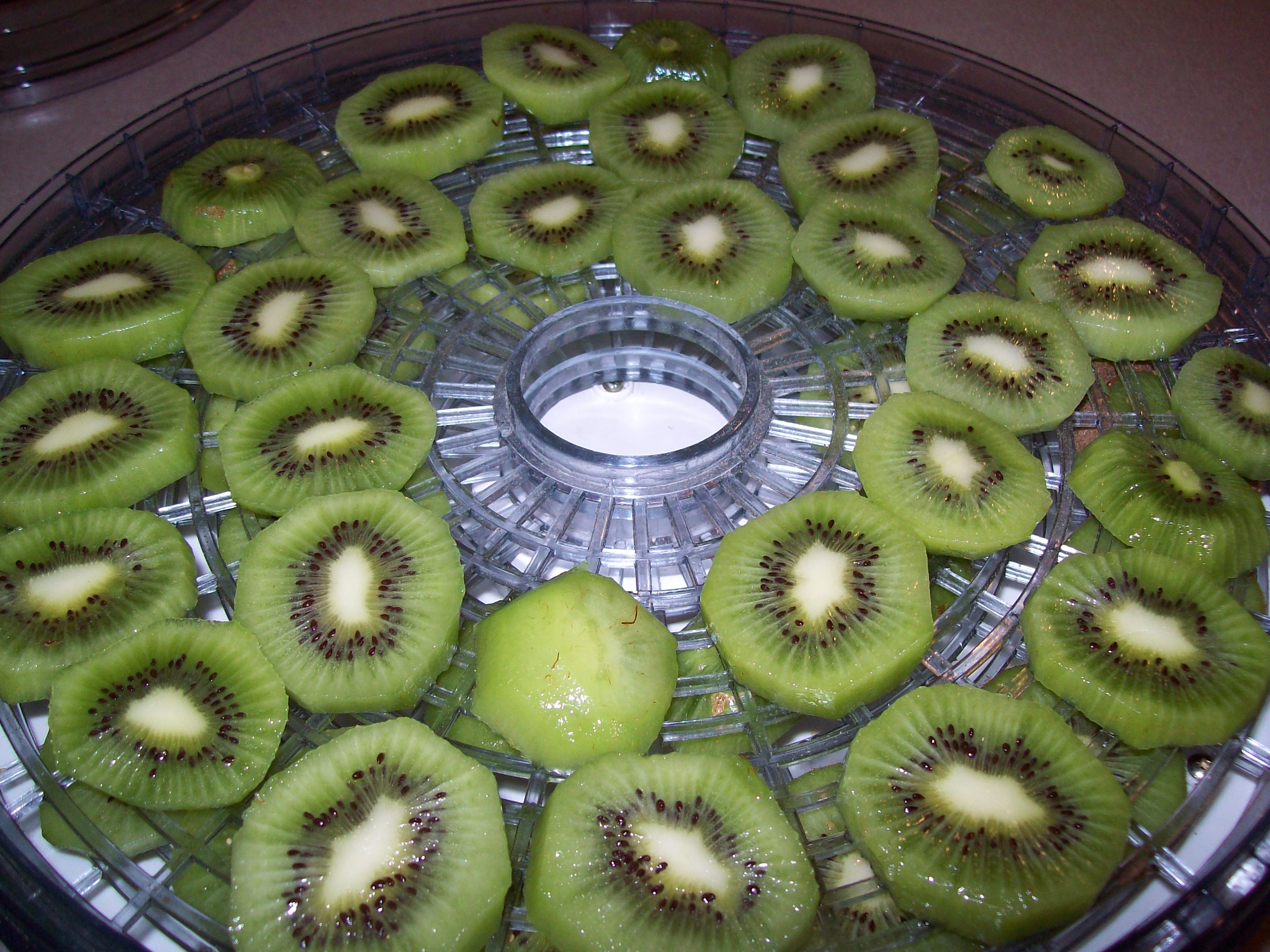 Slice in ¼” slices – don’t go thinner gets to dry. Lay them out on dehydrator trays. Turn on and wait. The length is tricky it depends on the dehydrator and the Kiwis but maybe around 3 hours Doneness is up to you. Let cool and store in airtight container or bag.