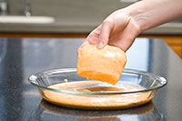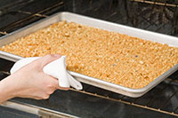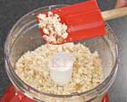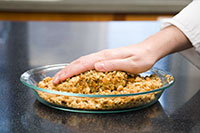 - Place the brown rice Krispies in a plastic bag, let air out, take a rolling pin and roll over until most are crunched and palace in a pie plate.