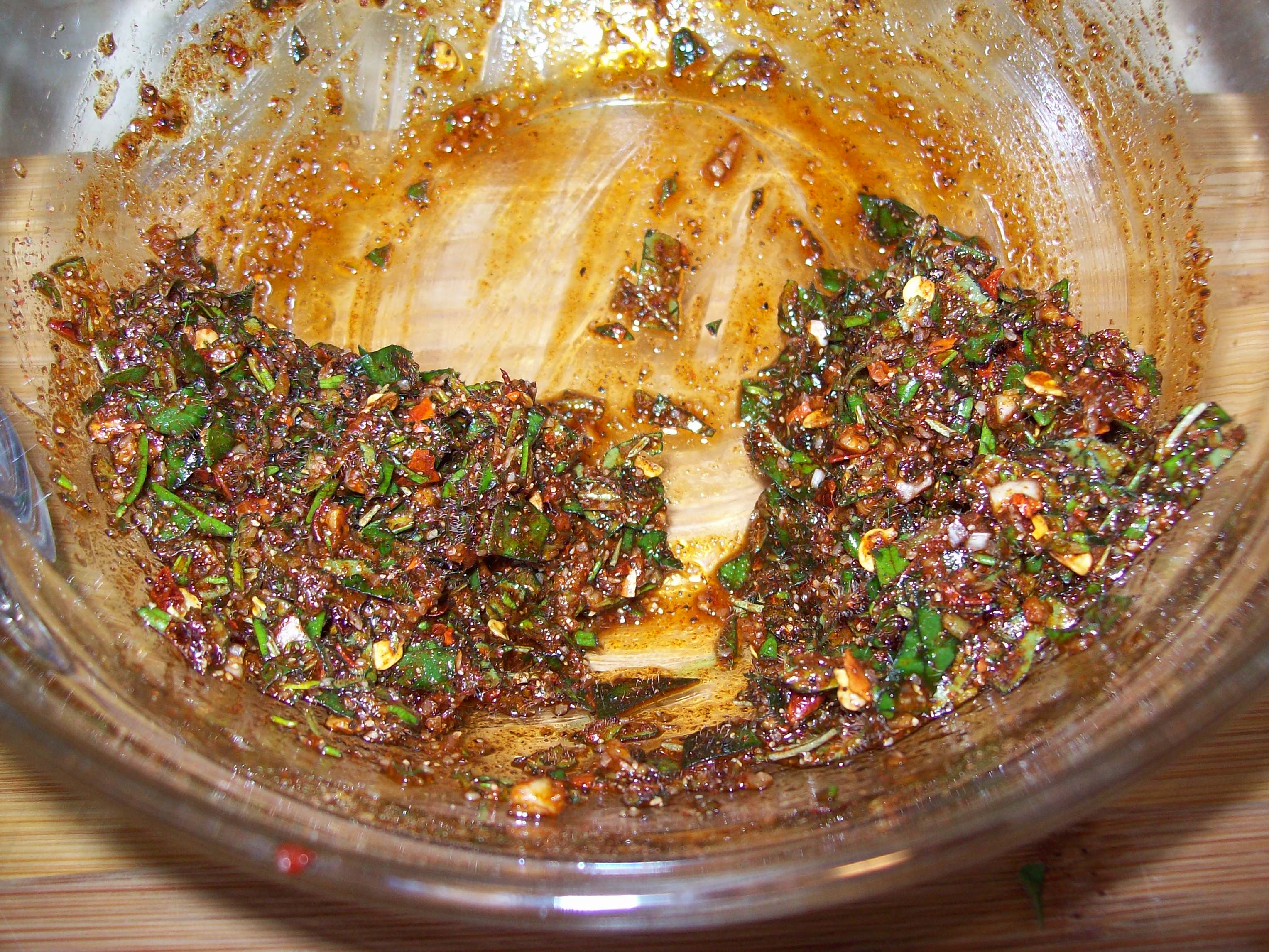 Divide the mixture roughly by half, spoon mixture over one side of steak and rub in with your fingers. Repeat on the other side. Come on give it a good massage it is a rub.