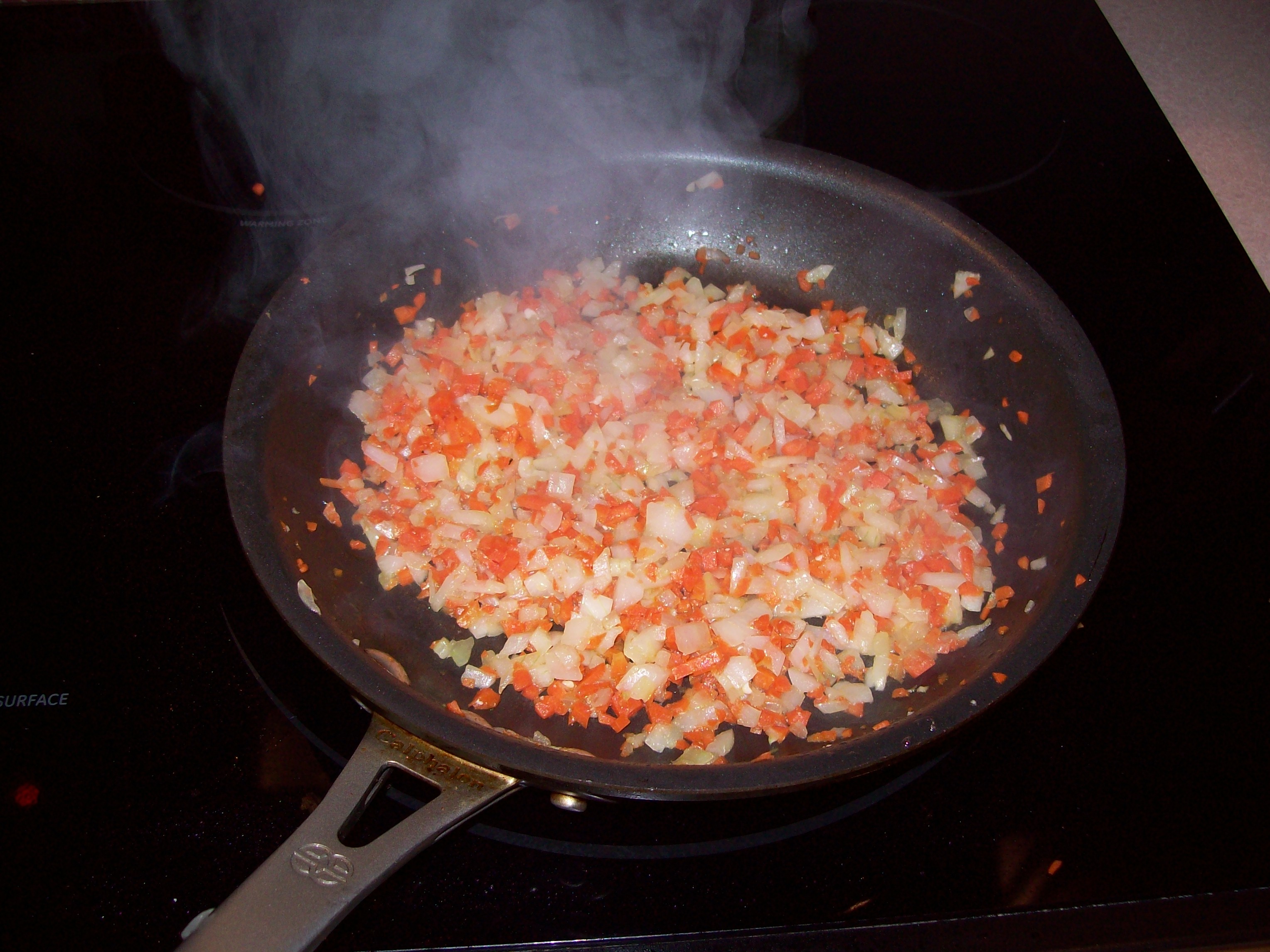 - Heat a large skillet with oil over medium-high heat. Sauté the chicken chunks with salt and pepper for about 4 minutes until browned.