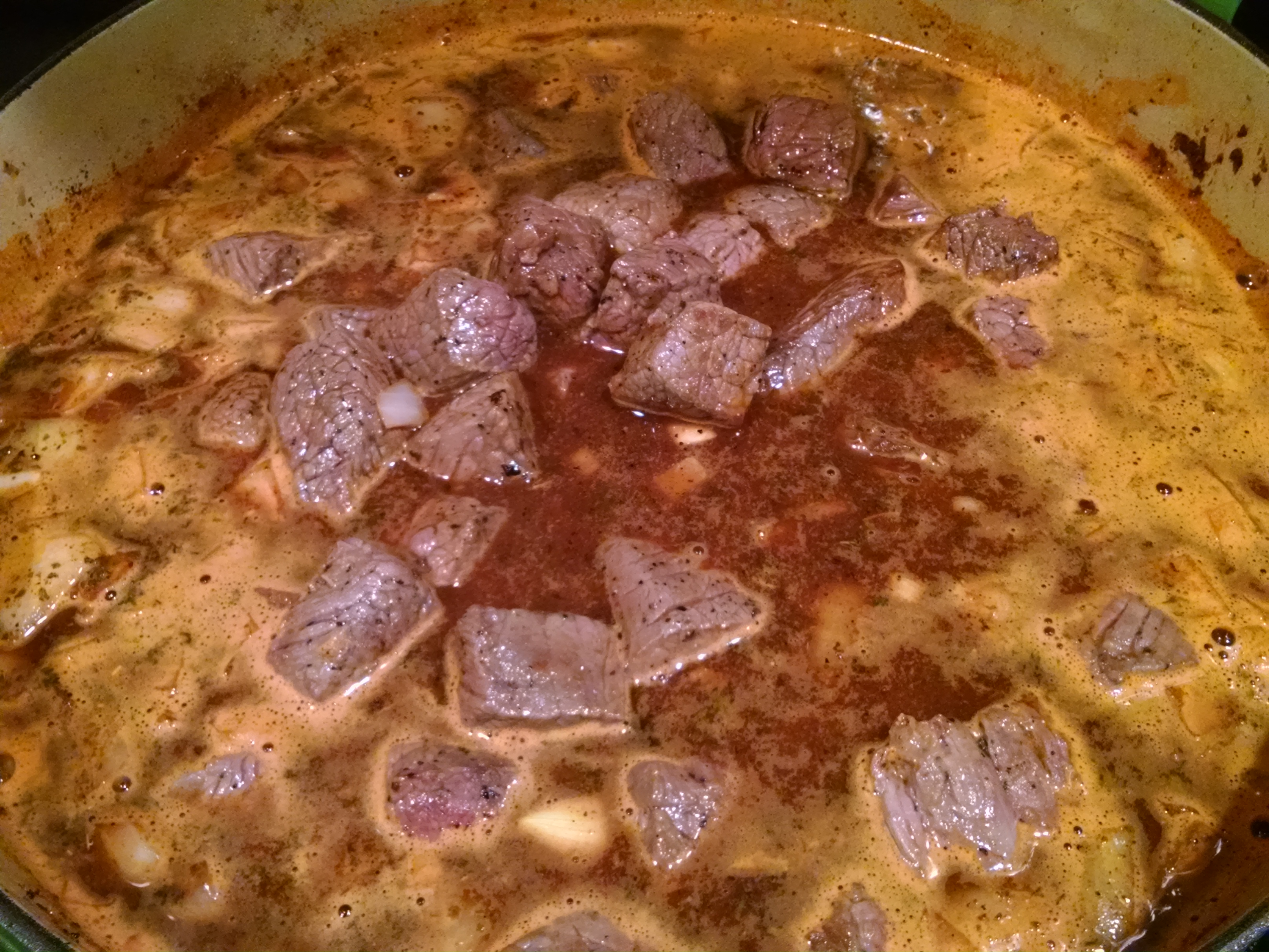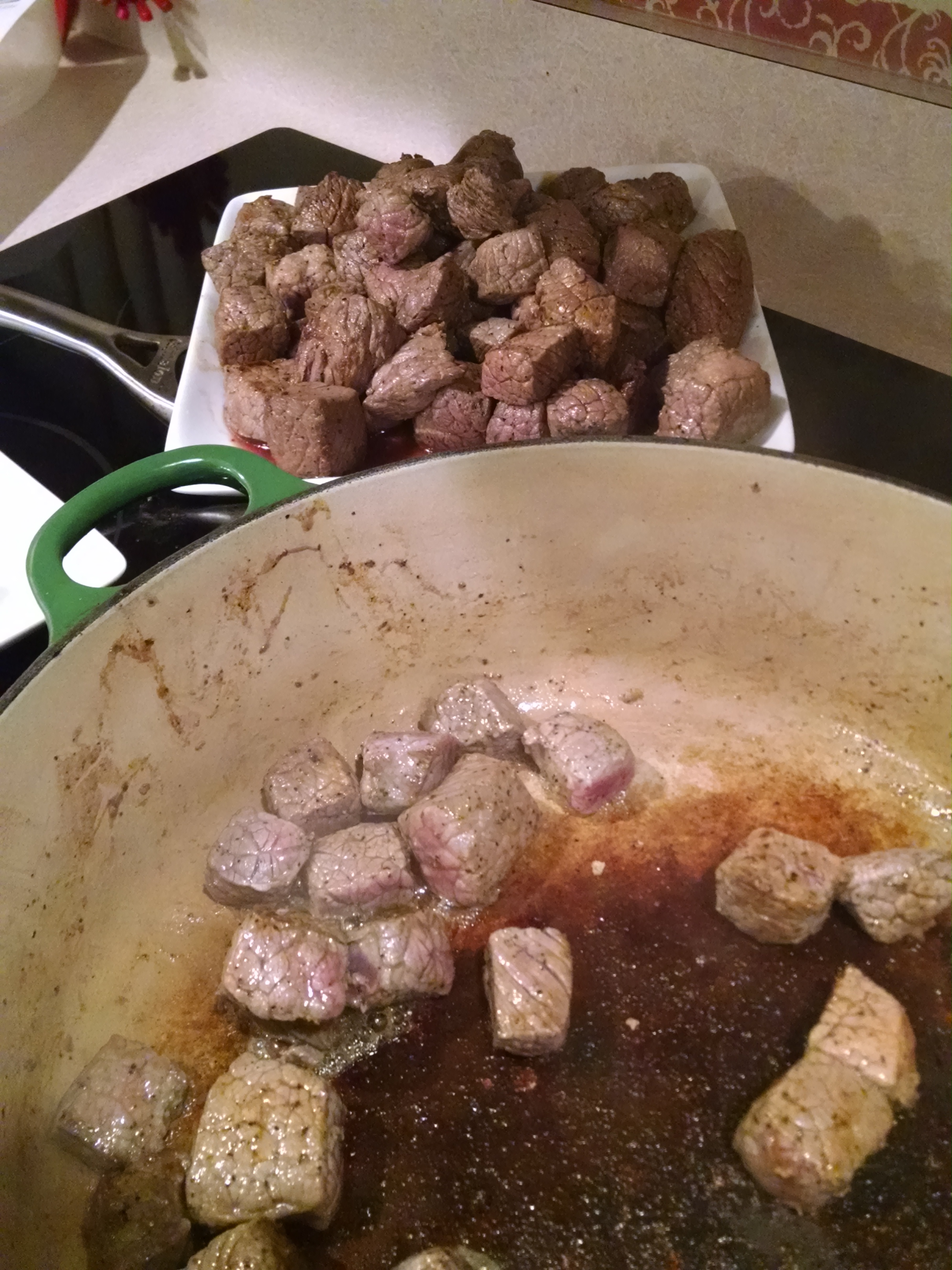 • 1 1/2 pounds stew beef, cut into 1-inch chunks